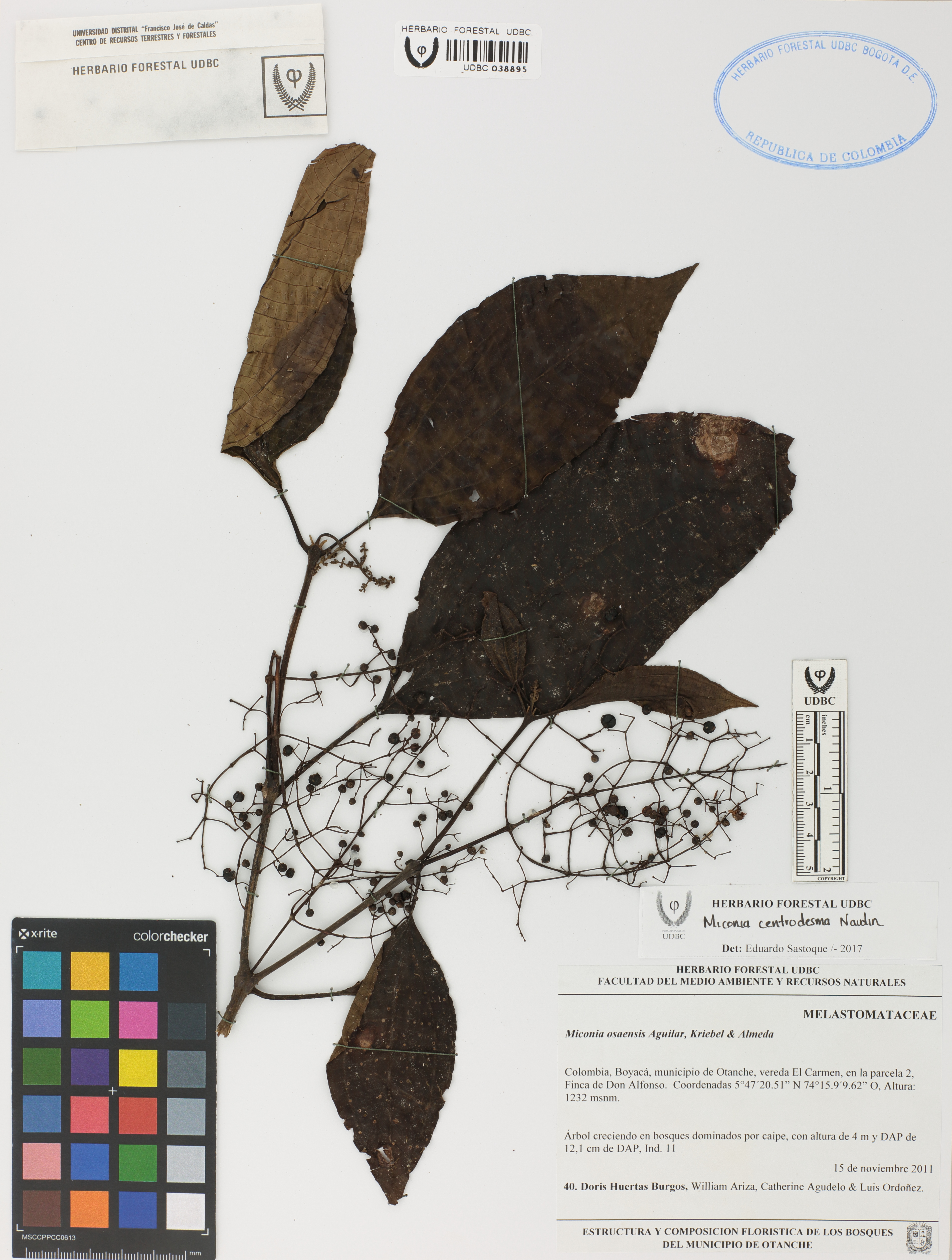 Fotografía del ejemplar Huertas, D. 40, determinado como Miconia centrodesma en el año 2017