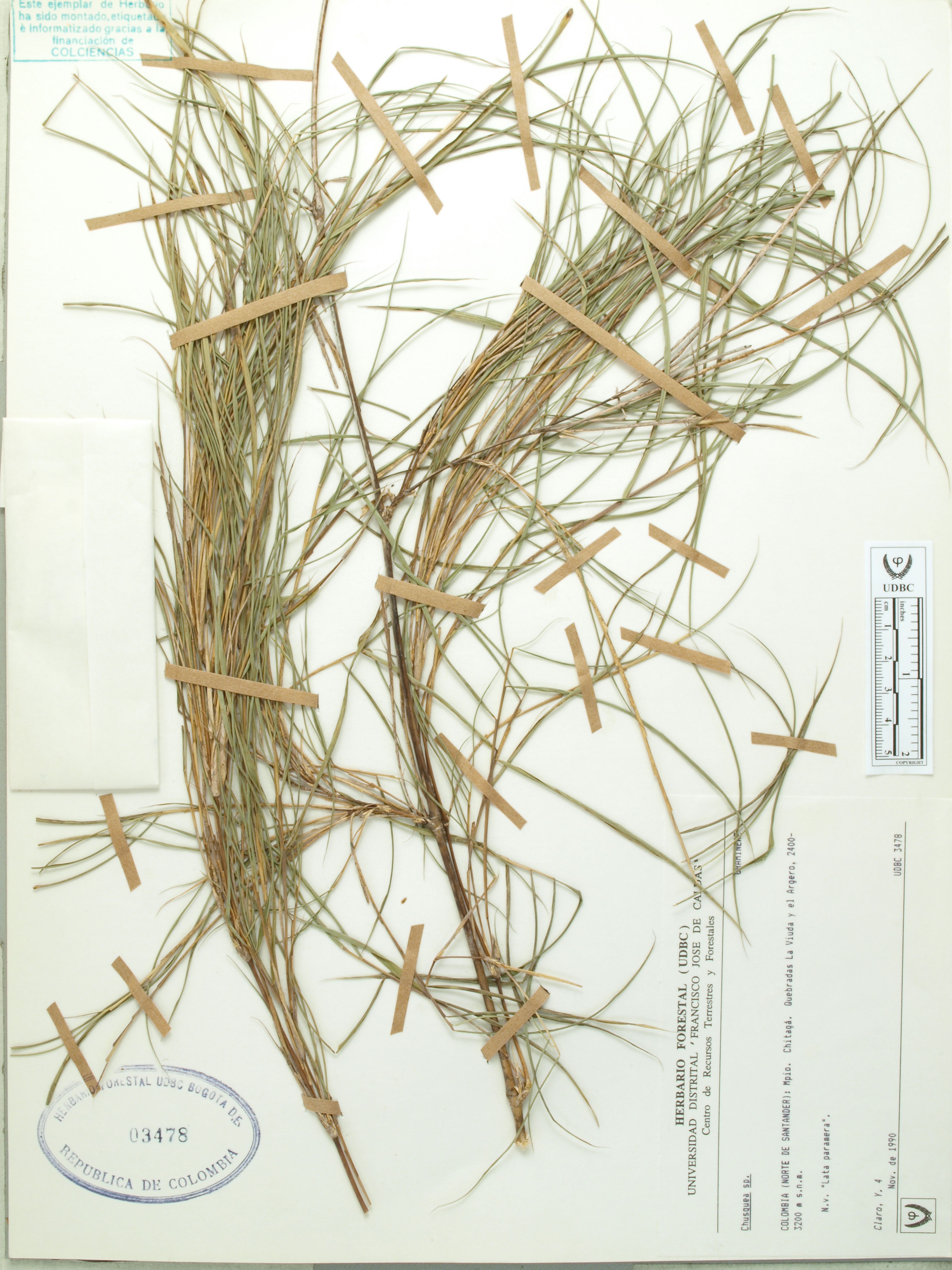 Fotografía del ejemplar Claro, Y. 4, determinado como Chusquea sp.