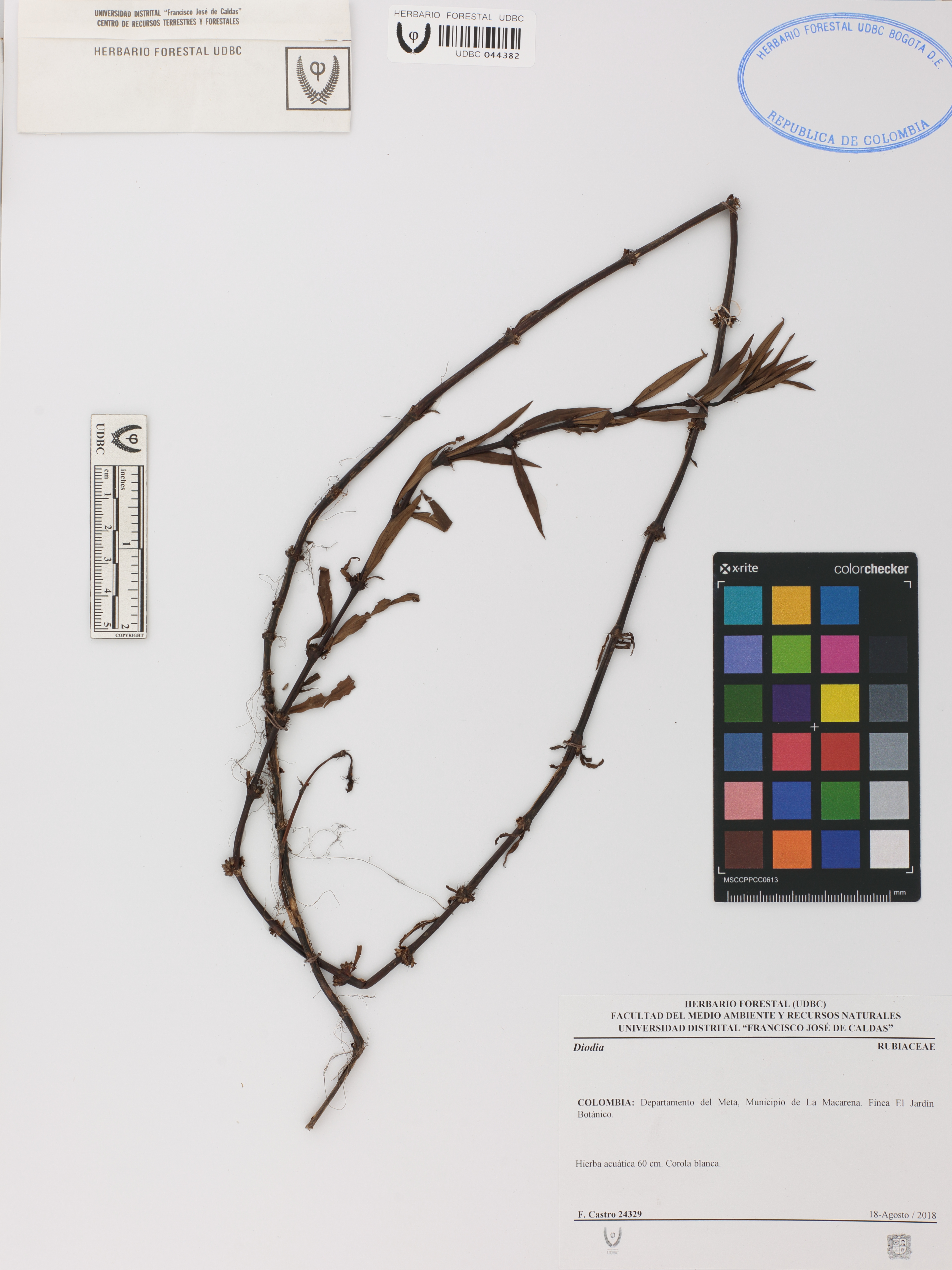 Fotografía del ejemplar Castro, F. 24329, determinado como Diodia sp.