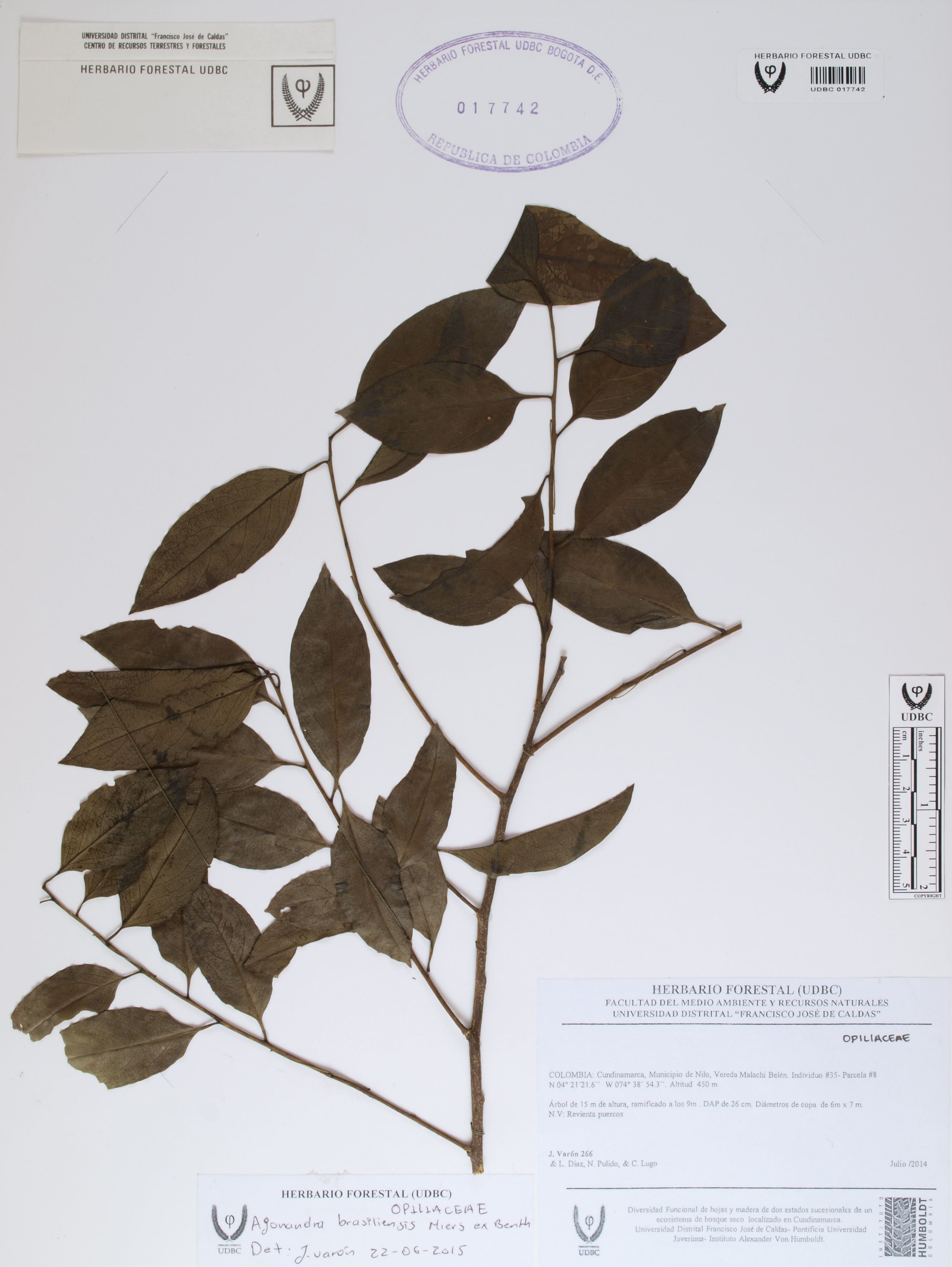 Fotografía del ejemplar Varón, J. 266, determinado como Agonandra brasiliensis en el año 2015
