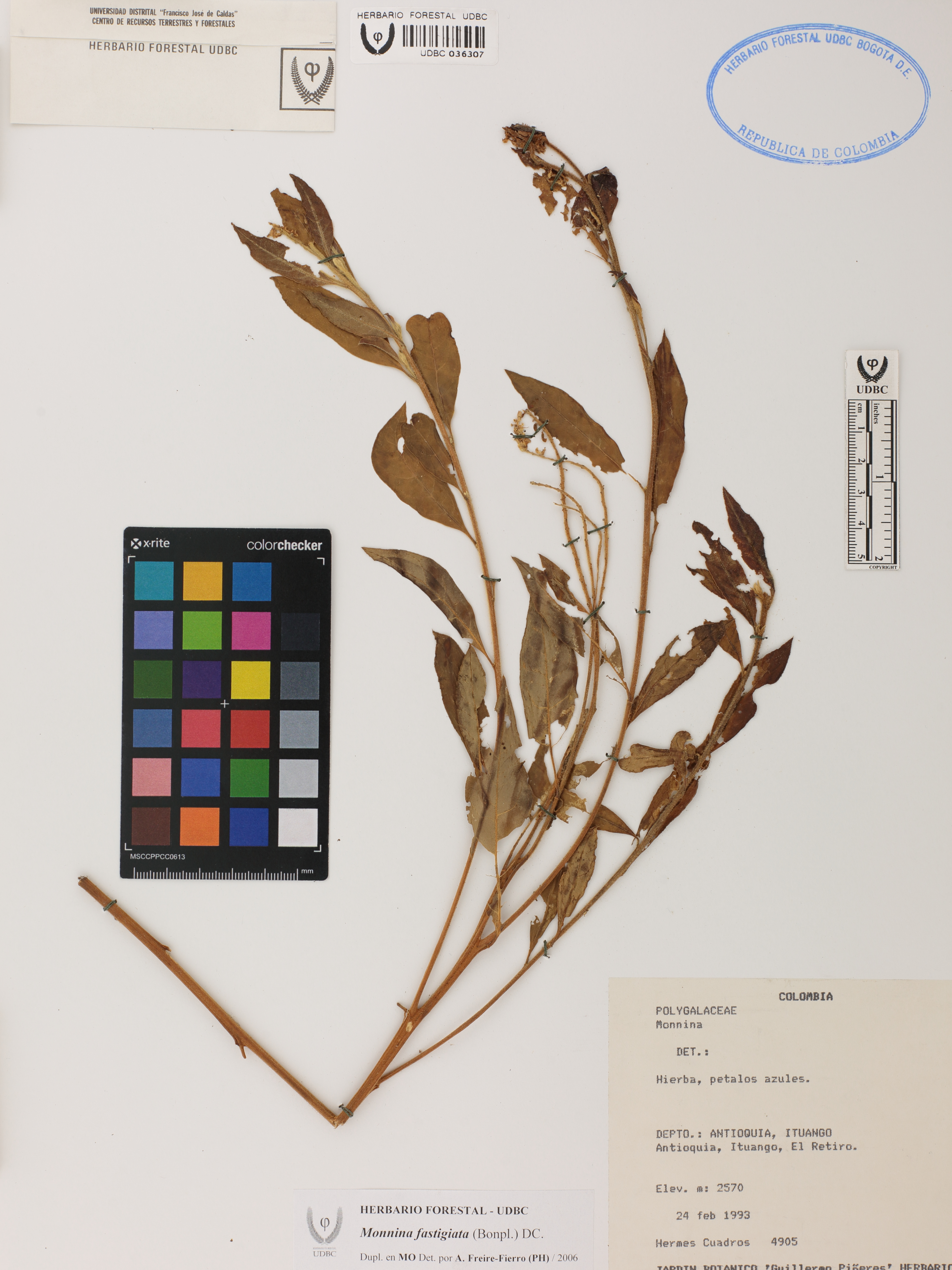 Fotografía del ejemplar Cuadros, H. 4905, determinado como Monnina fastigiata en el año 2006