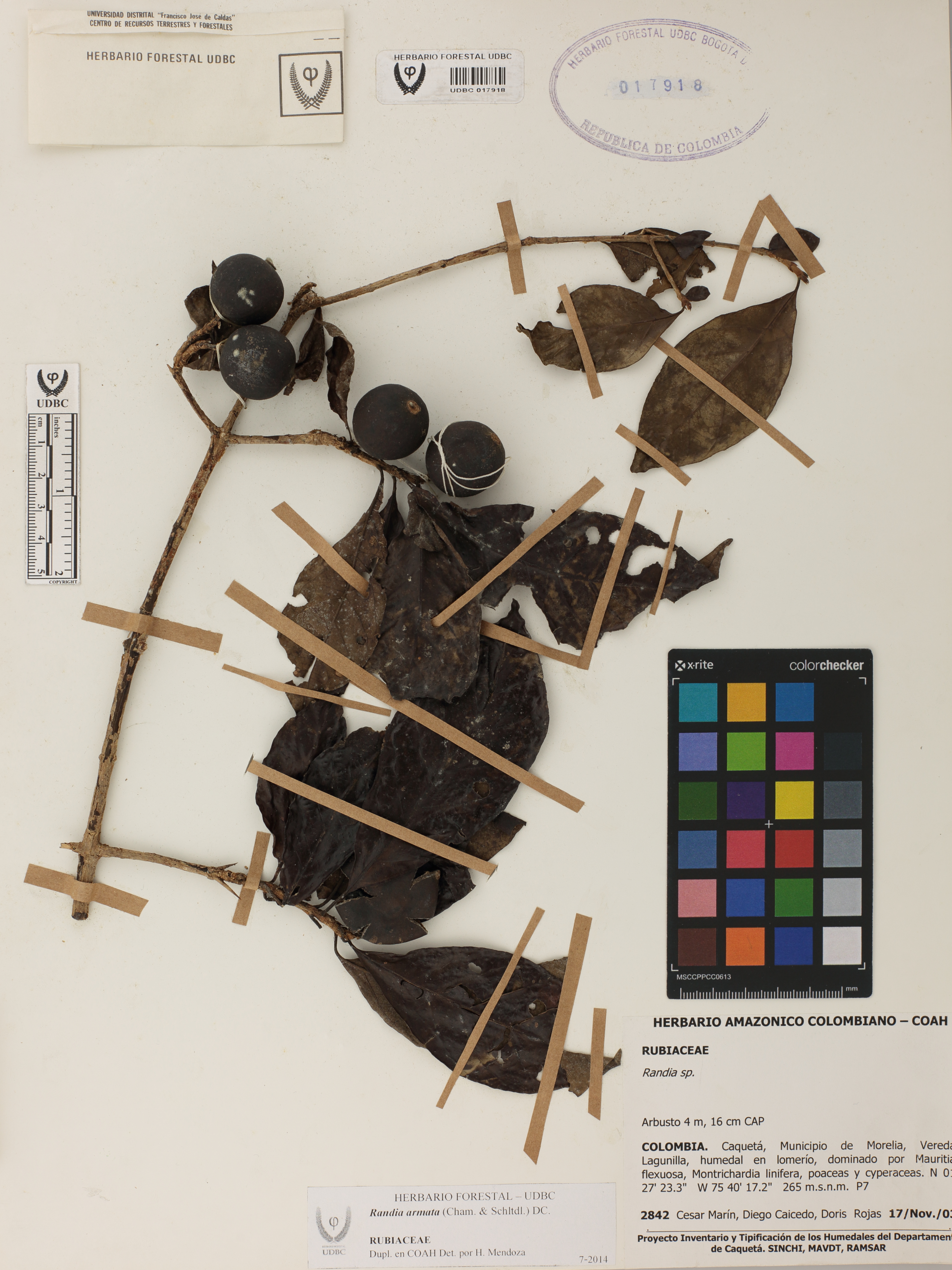 Fotografía del ejemplar Marín, C. 2842, determinado como Randia ferox en el año 2014