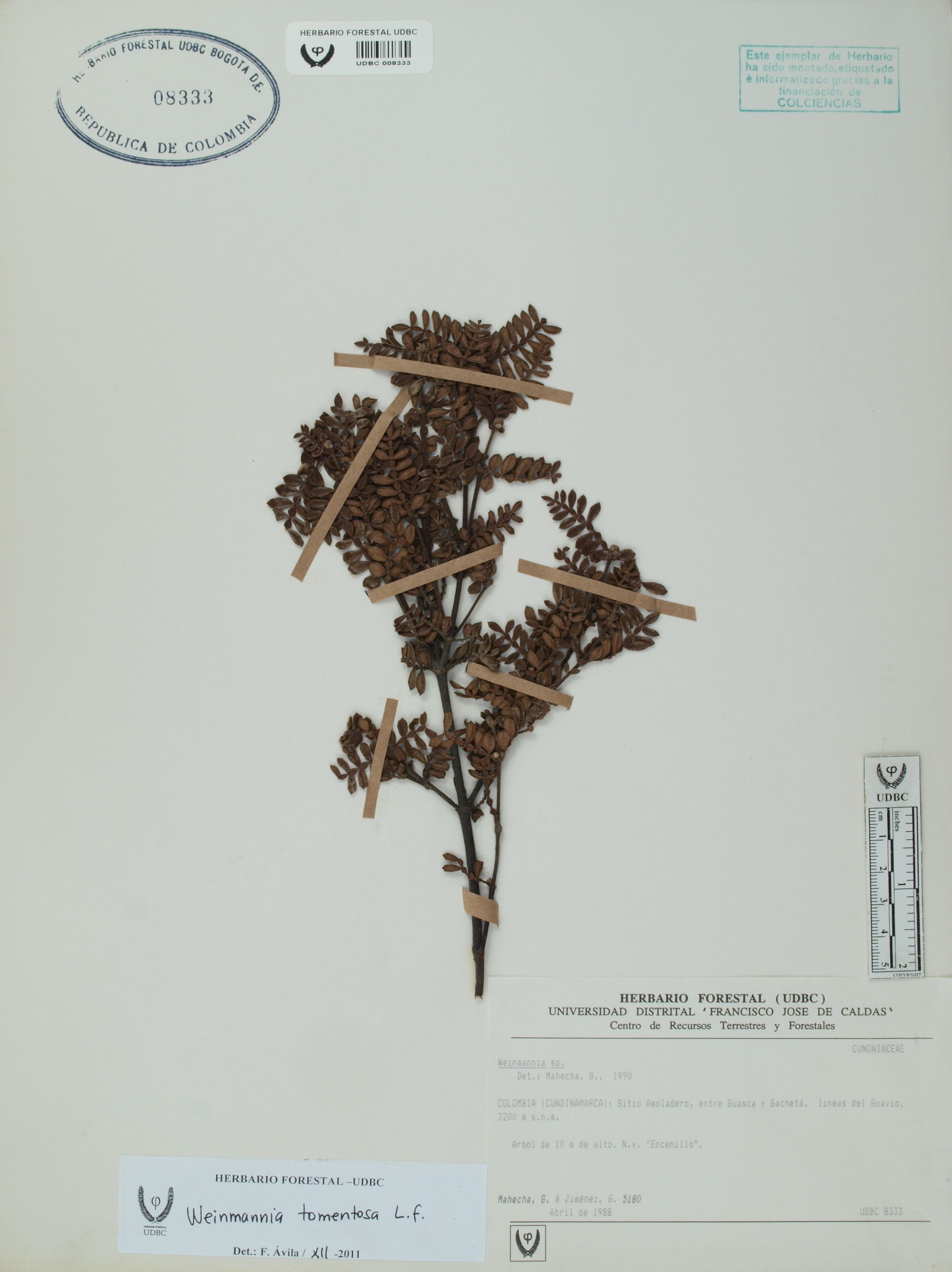 Fotografía del ejemplar Mahecha, G. 5180, determinado como Weinmannia tomentosa en el año 2011