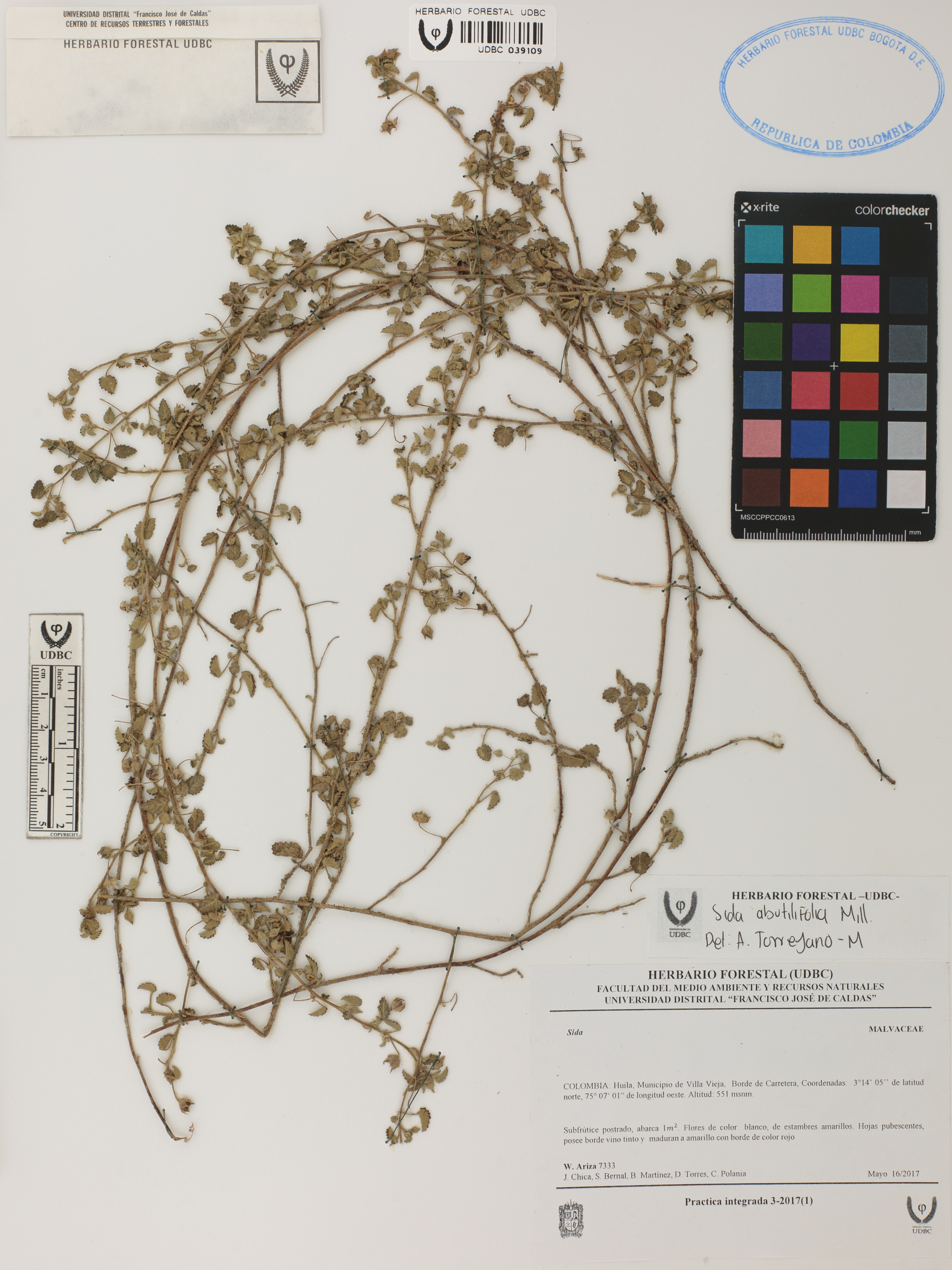 Fotografía del ejemplar Ariza, W. 7333, determinado como Sida abutilifolia en el año 2022