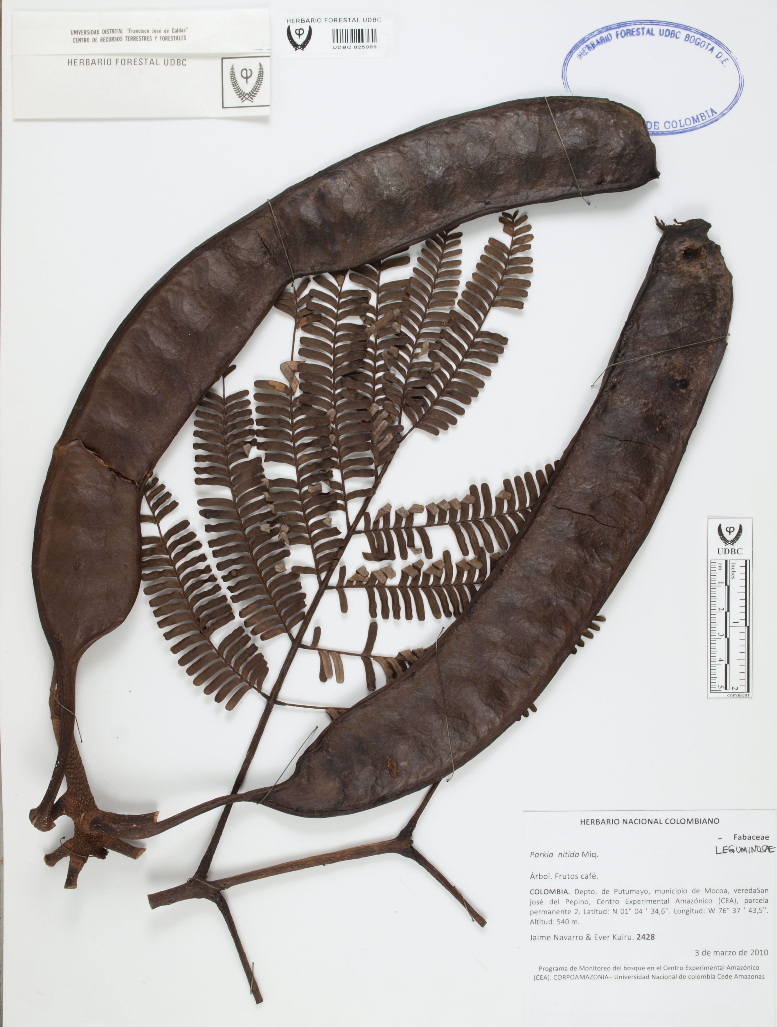 Fotografía del ejemplar Navarro, J. 2428, determinado como Parkia nitida