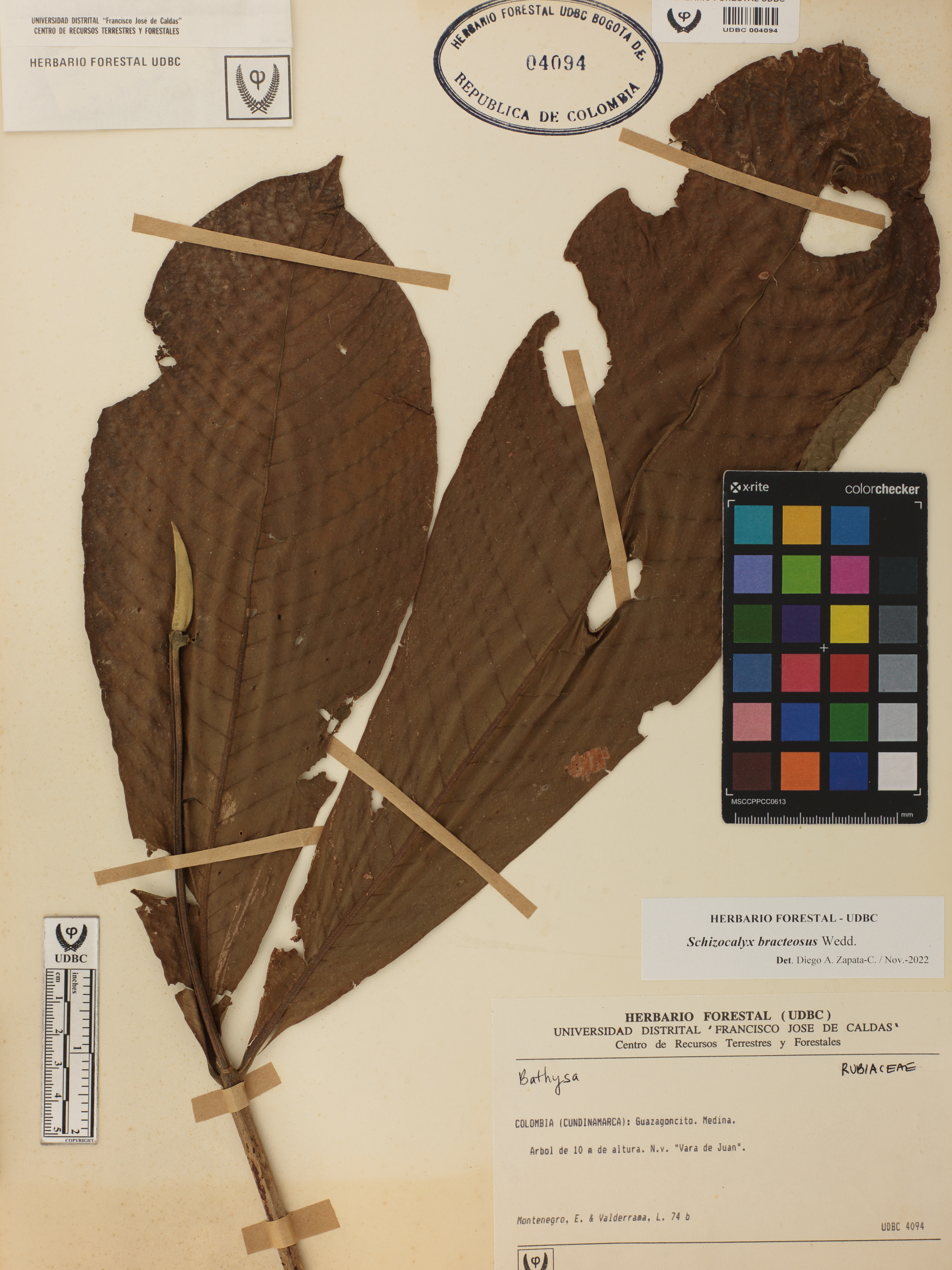 Fotografía del ejemplar Montenegro, D. 74, determinado como Schizocalyx bracteosus en el año 2022