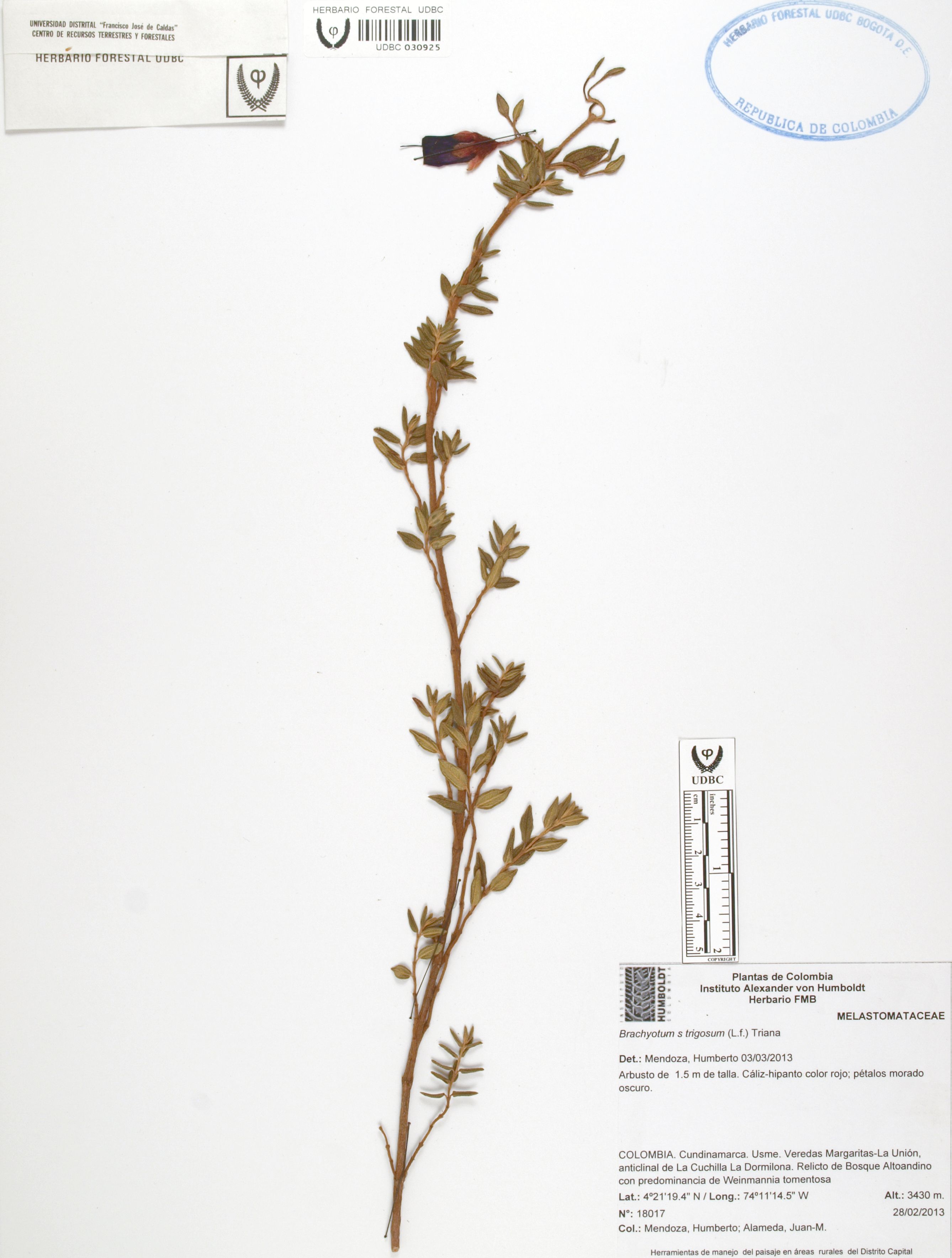 Fotografía del ejemplar Mendoza, H. 180717, determinado como Brachyotum strigosum en el año 2013