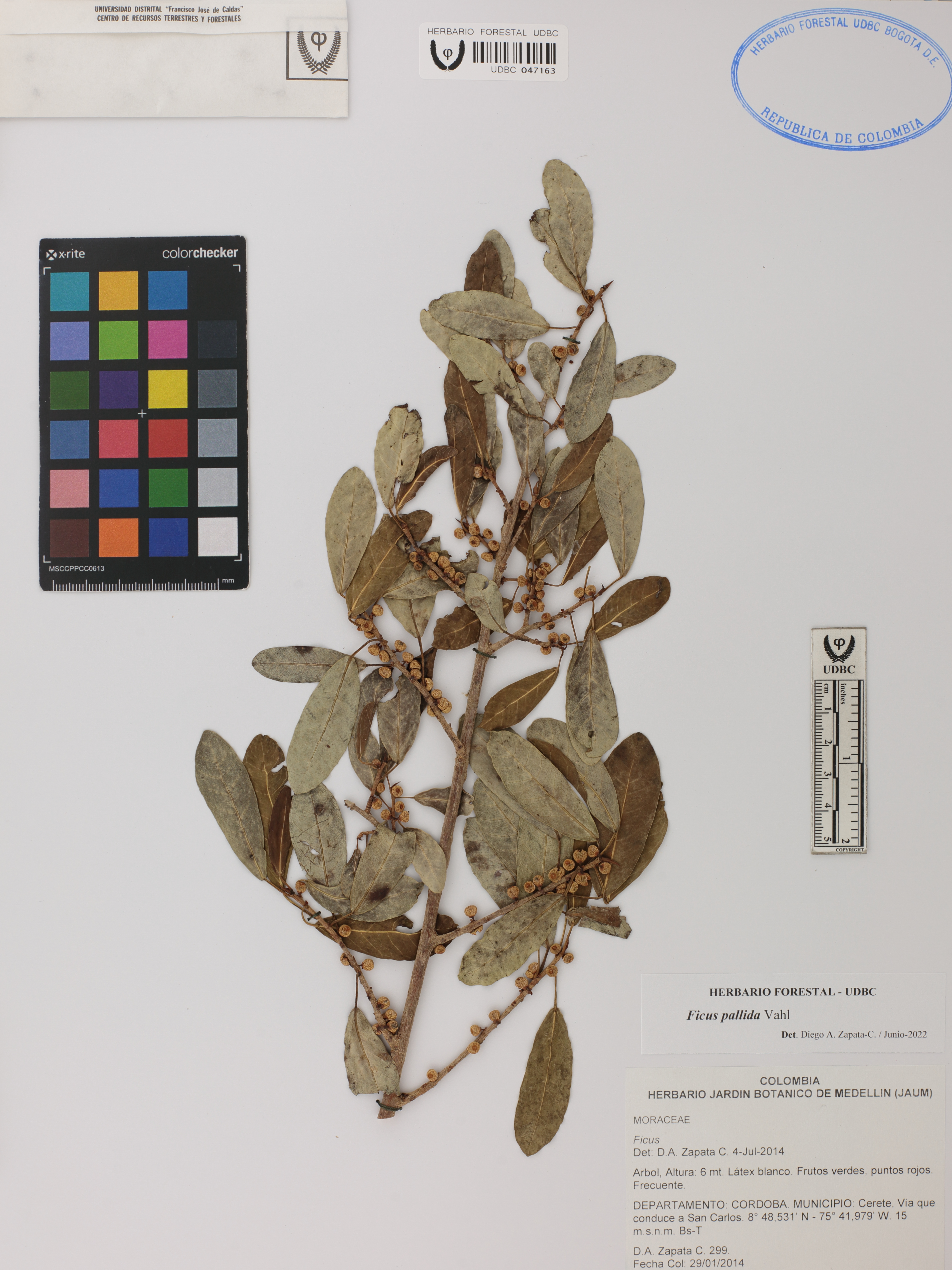 Fotografía del ejemplar Zapata-C., D. 299, determinado como Ficus pallida en el año 2022