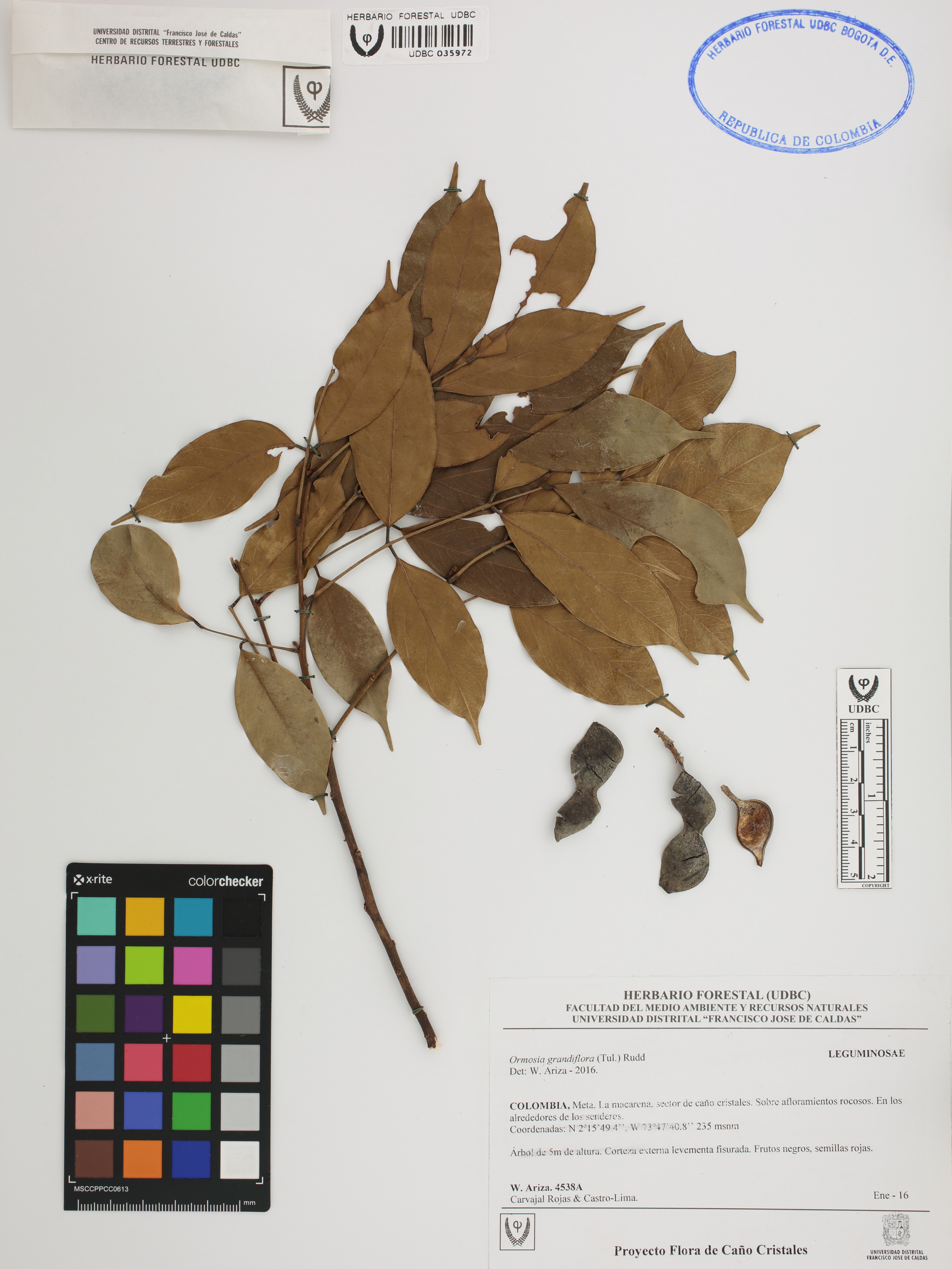 Fotografía del ejemplar Ariza, W. 4538, determinado como Ormosia grandiflora en el año 2016