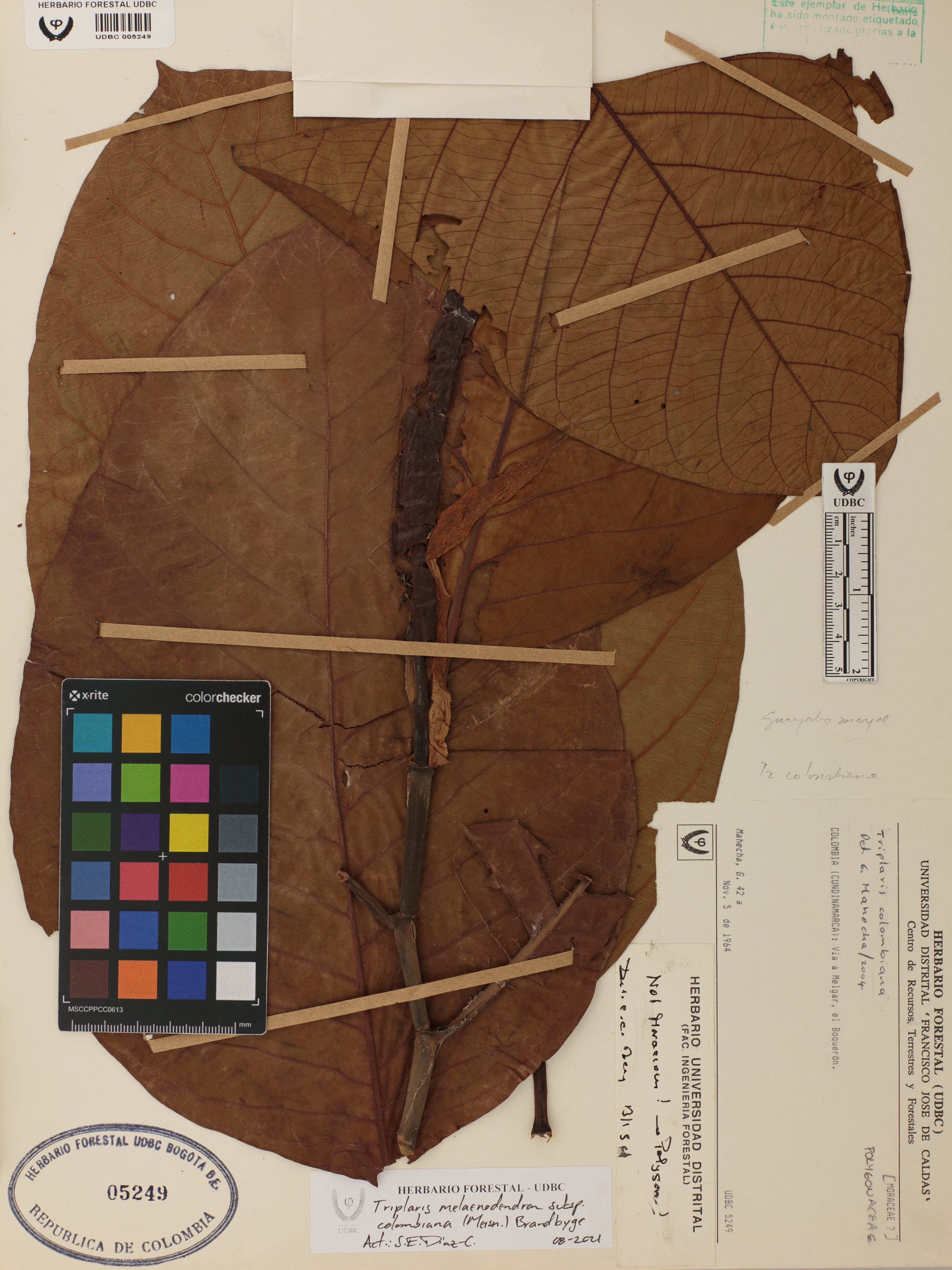 Fotografía del ejemplar Mahecha, G. 42, determinado como Triplaris melaenodendron subsp. colombiana en el año 1998