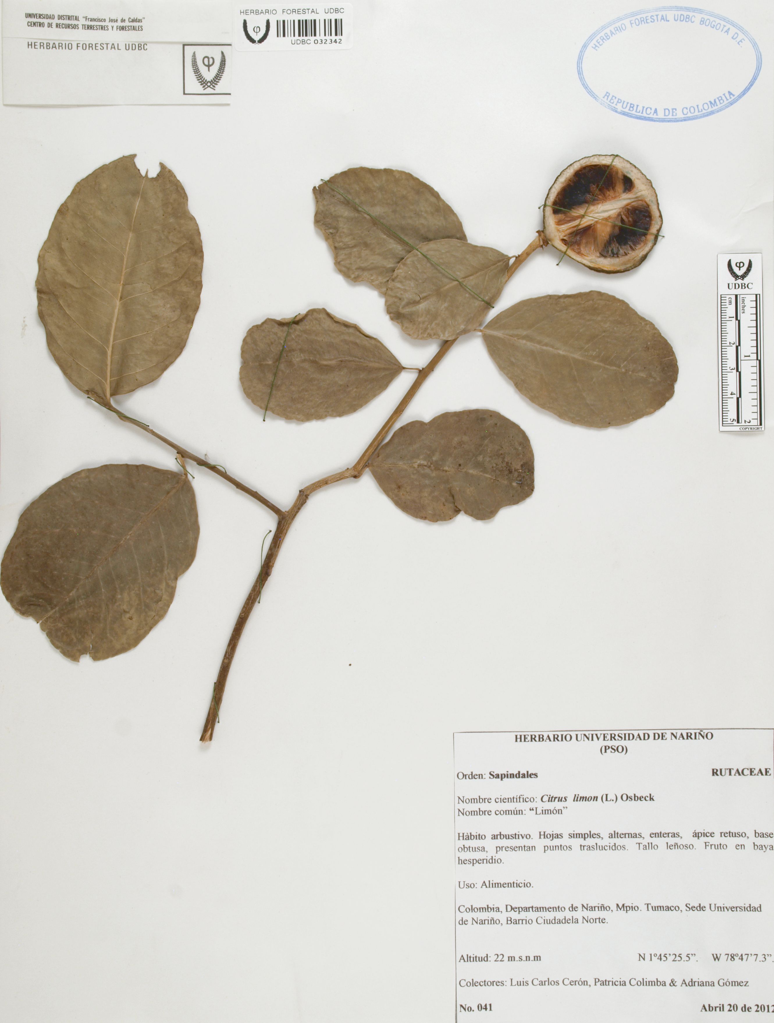 | dc.description | Fotografía del ejemplar Cerón, L. 41, determinado como Citrus × limon | |