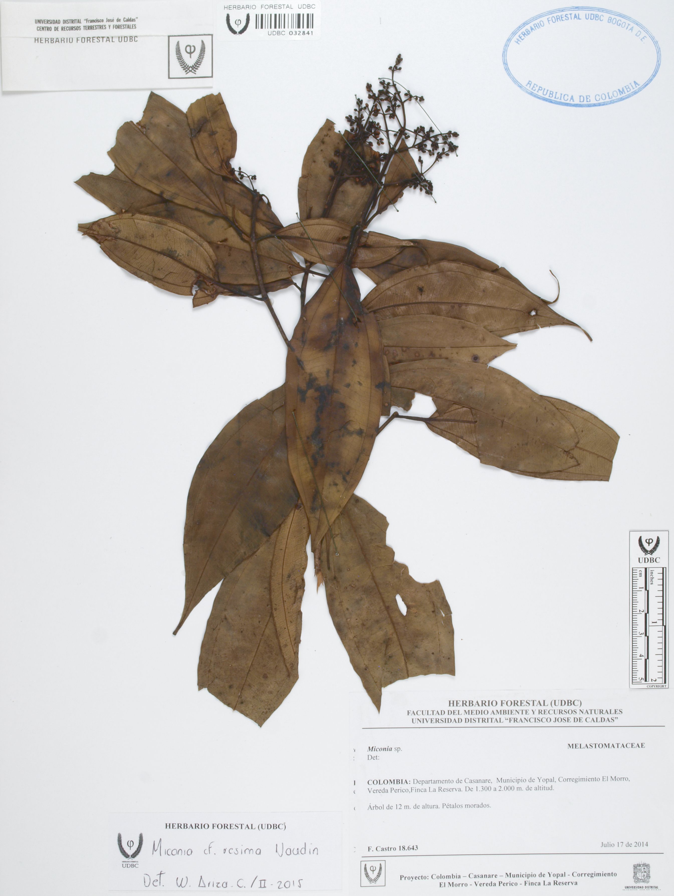 Fotografía del ejemplar Castro, F. 18643, determinado como Miconia resima en el año 2015
