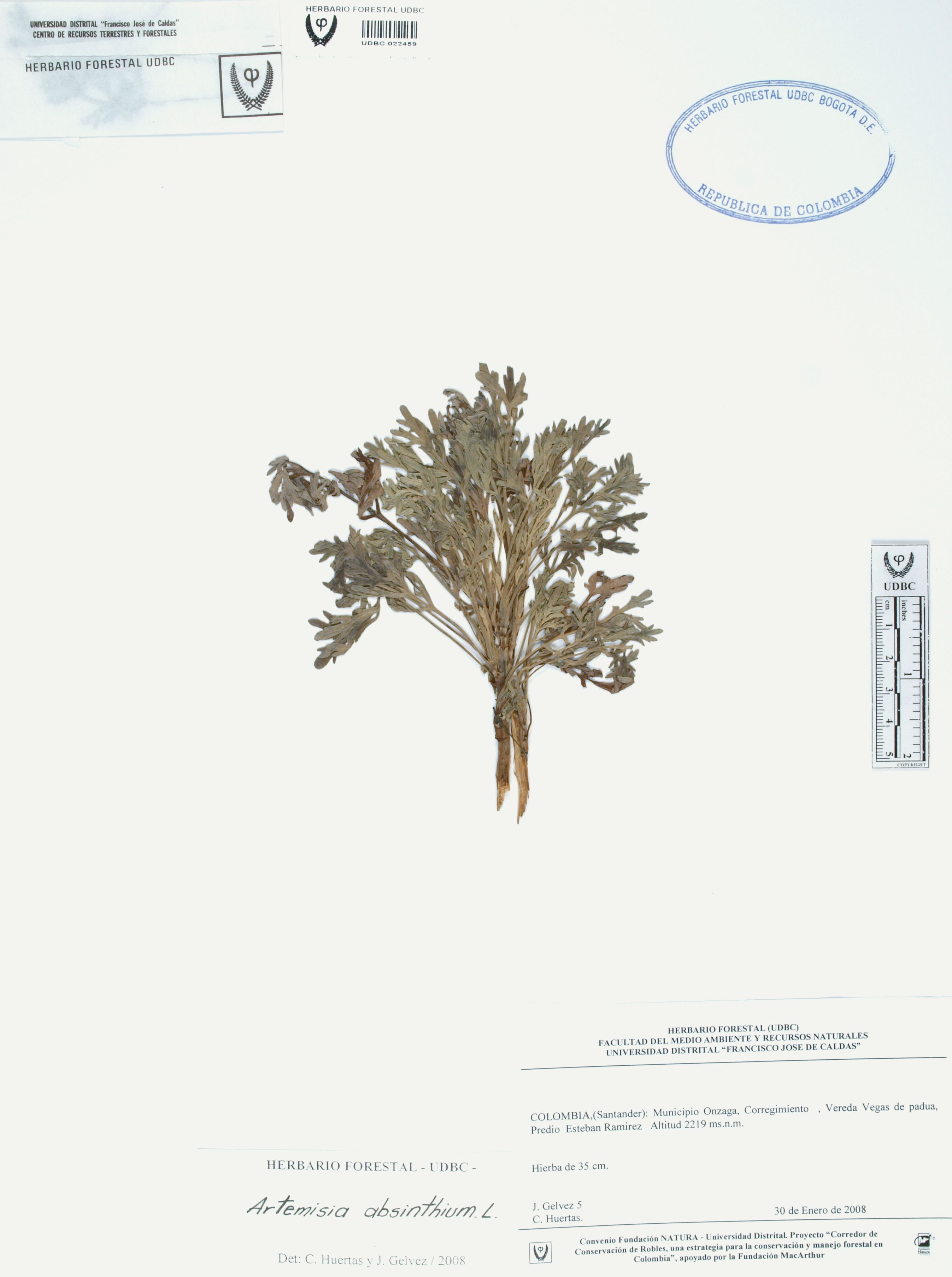 Fotografía del ejemplar Gelvez, J. 5, determinado como Artemisia absinthium en el año 2008