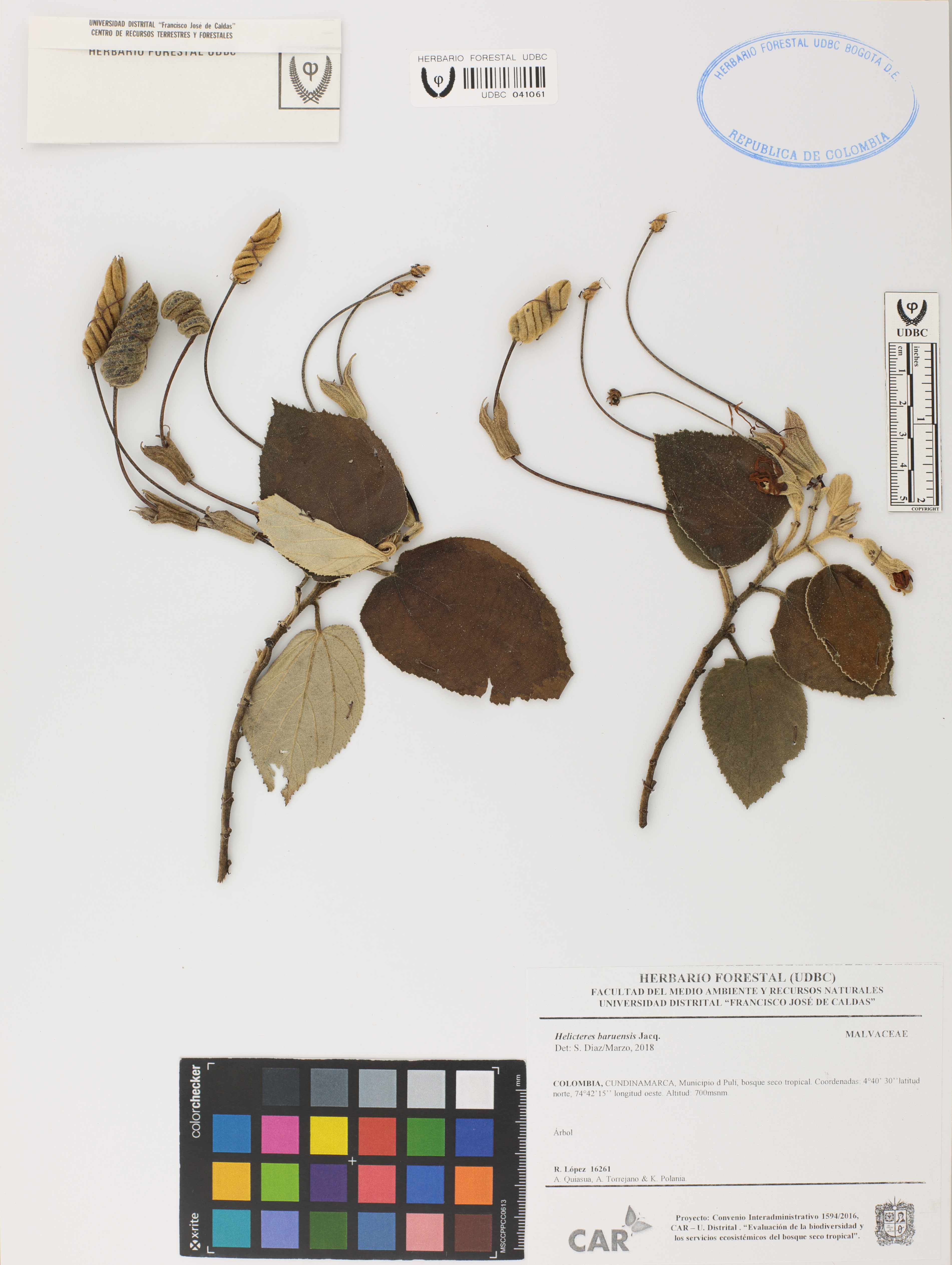 Fotografía del ejemplar López, R. 16261, determinado como Helicteres baruensis en el año 2018
