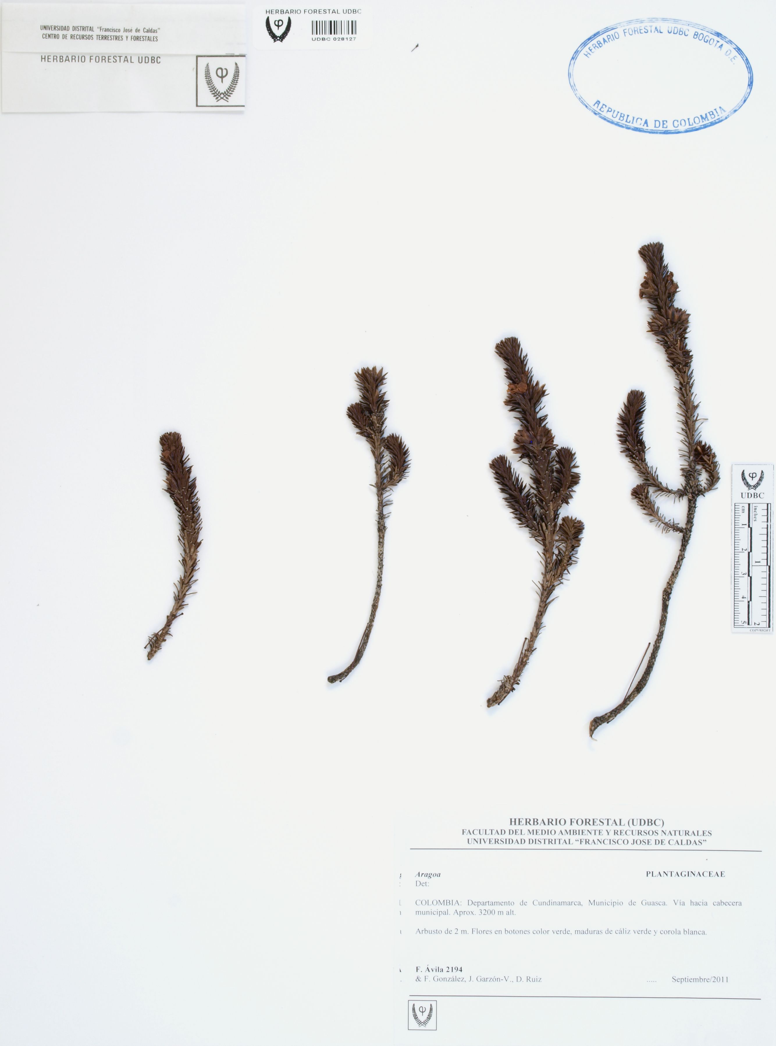 Fotografía del ejemplar Ávila, F. 2194, determinado como Aragoa sp.