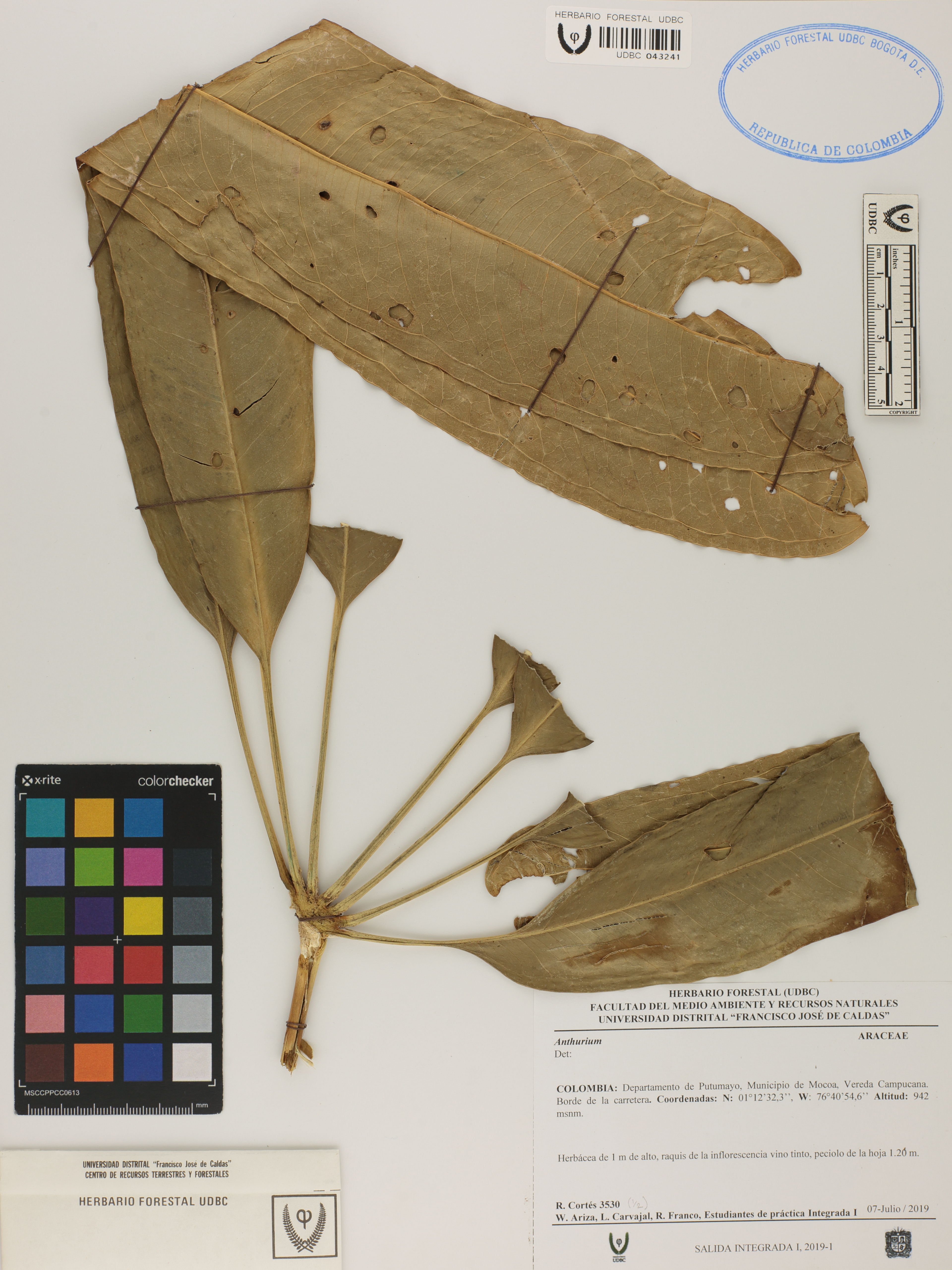 Fotografía del ejemplar Cortés, R. 3530 (1/2), determinado como Anthurium sp.