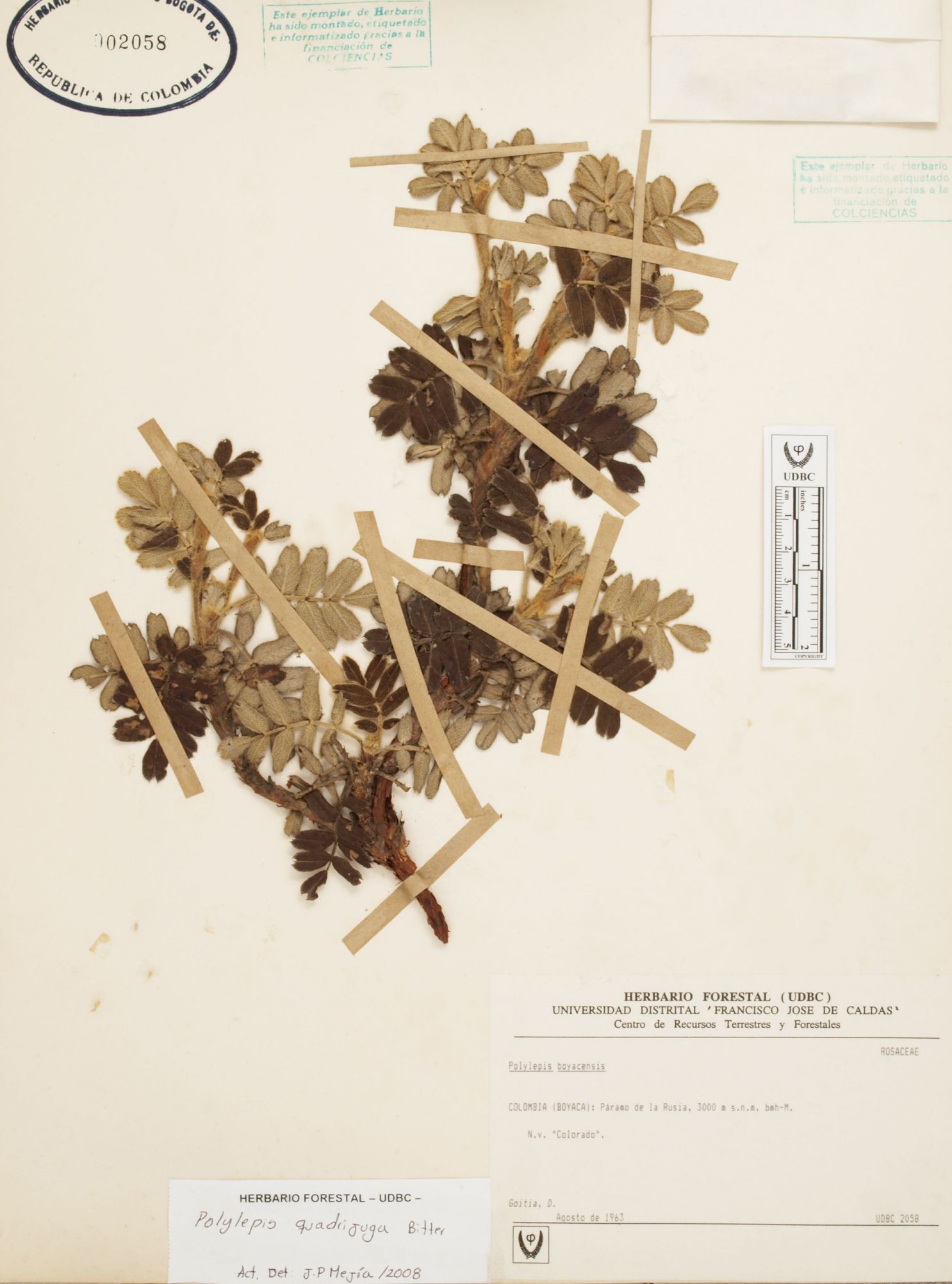 Fotografía del ejemplar Goitia, D., determinado como Polylepis quadrijuga en el año 2008