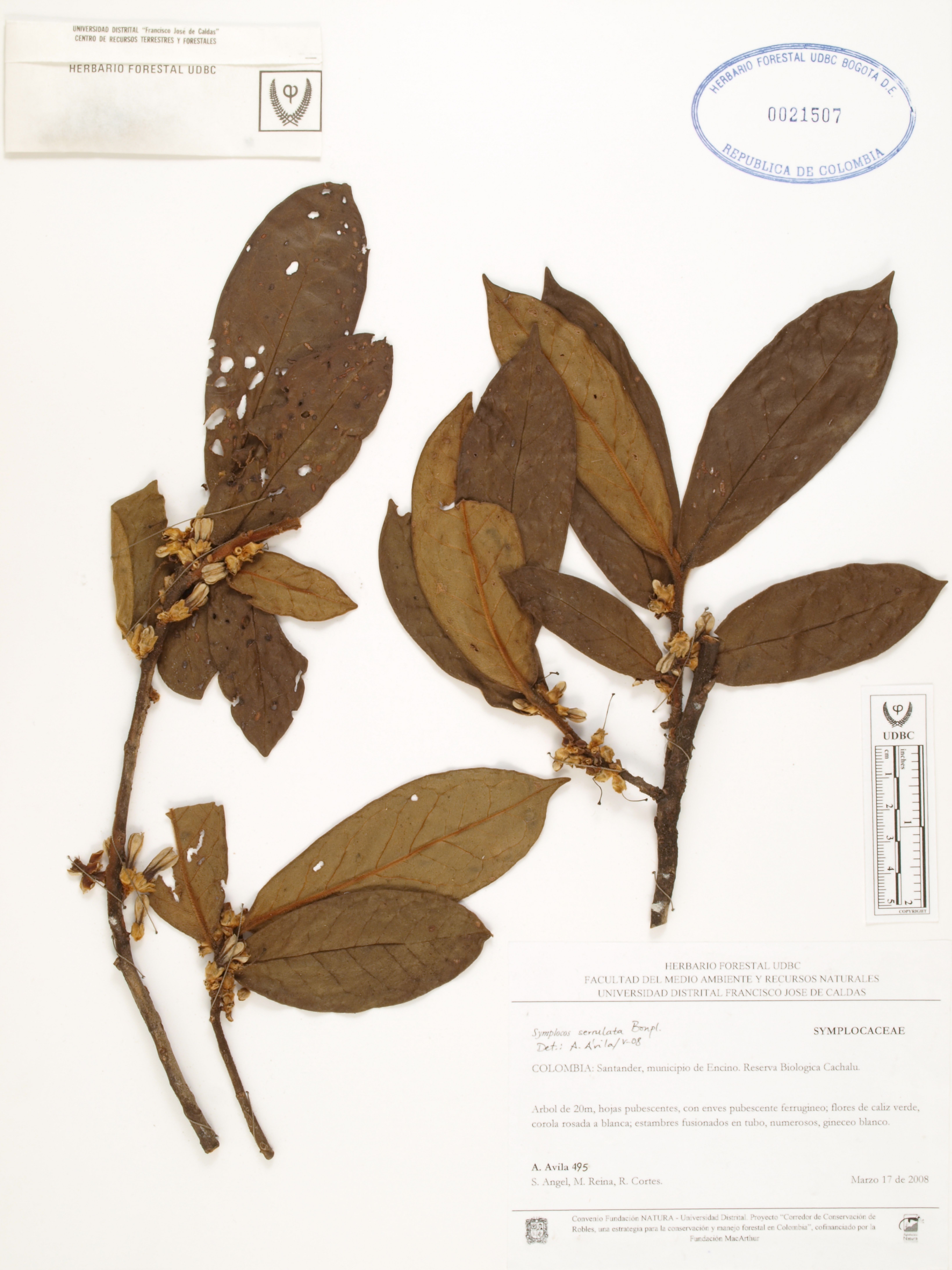 Fotografía del ejemplar Ávila, F. 495, determinado como Symplocos serrulata en el año 2008