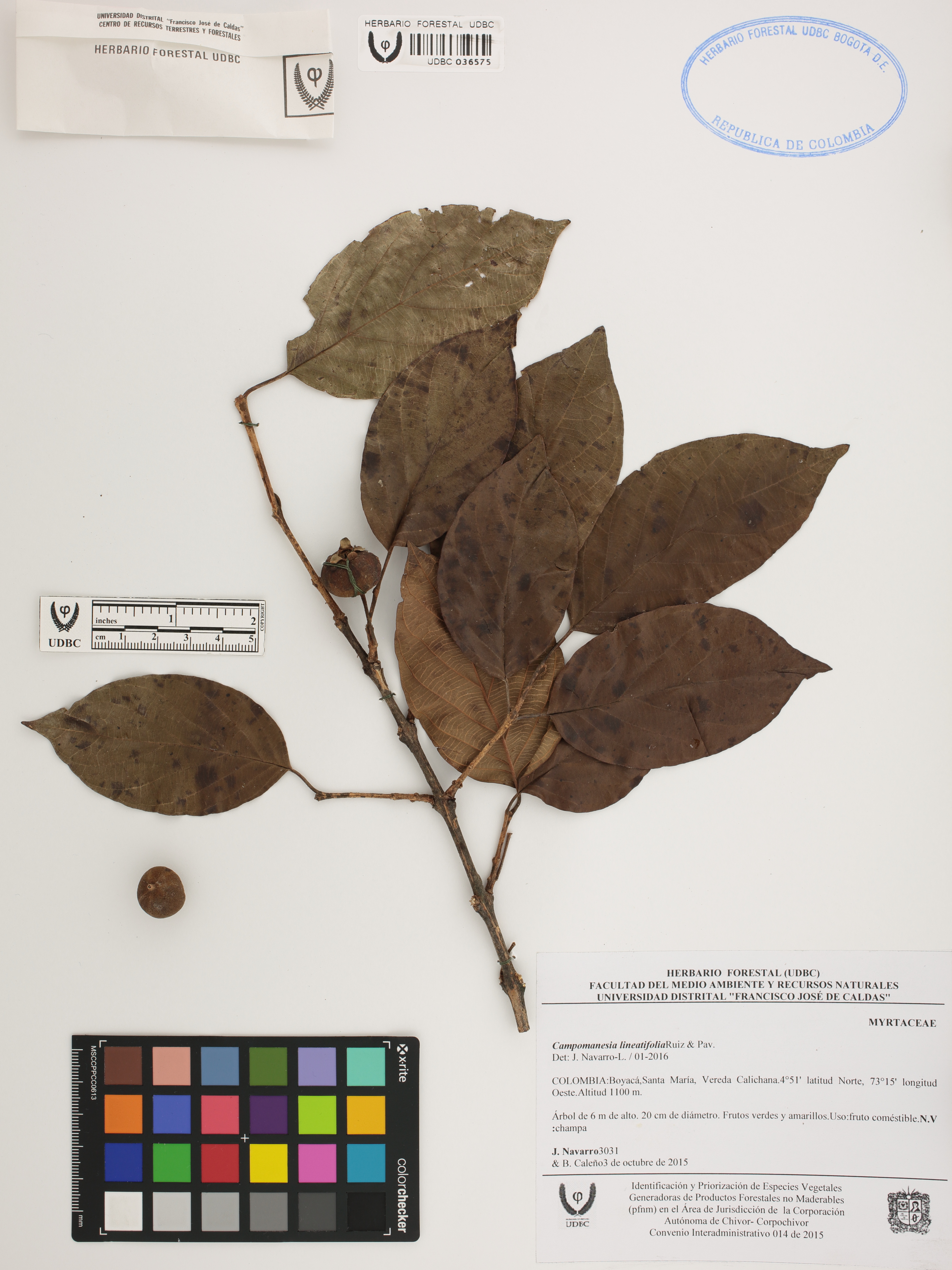 Fotografía del ejemplar Navarro, J. 3031, determinado como Campomanesia lineatifolia en el año 2016