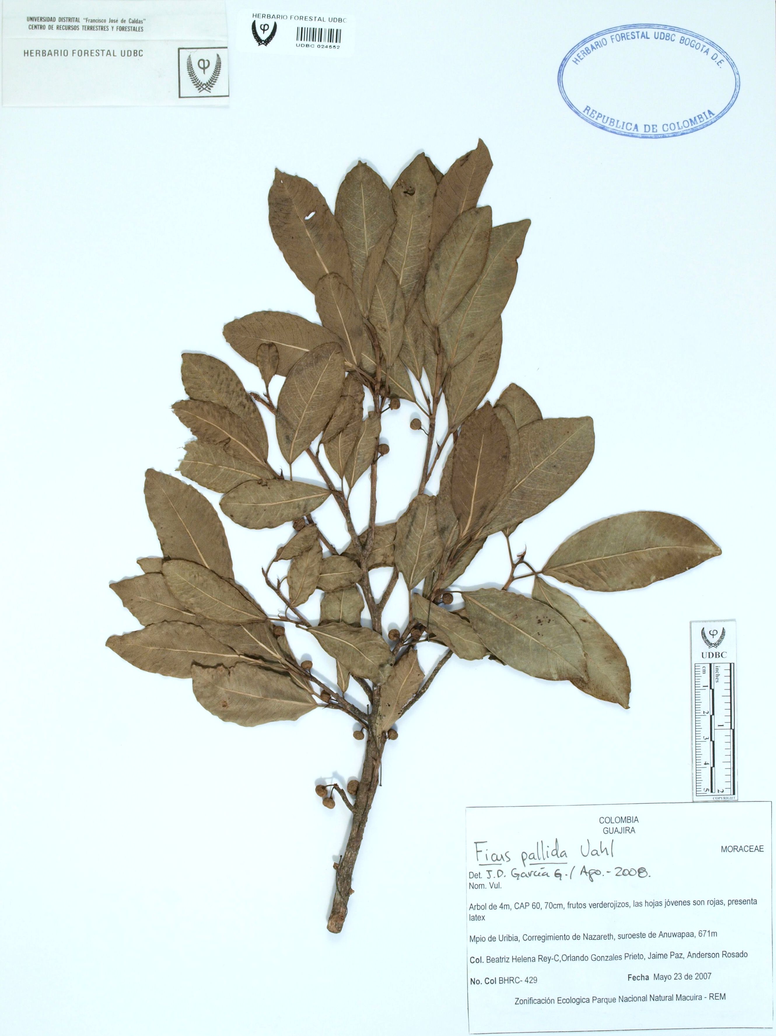Fotografía del ejemplar Rey-C., B. 429, determinado como Ficus pallida en el año 2008