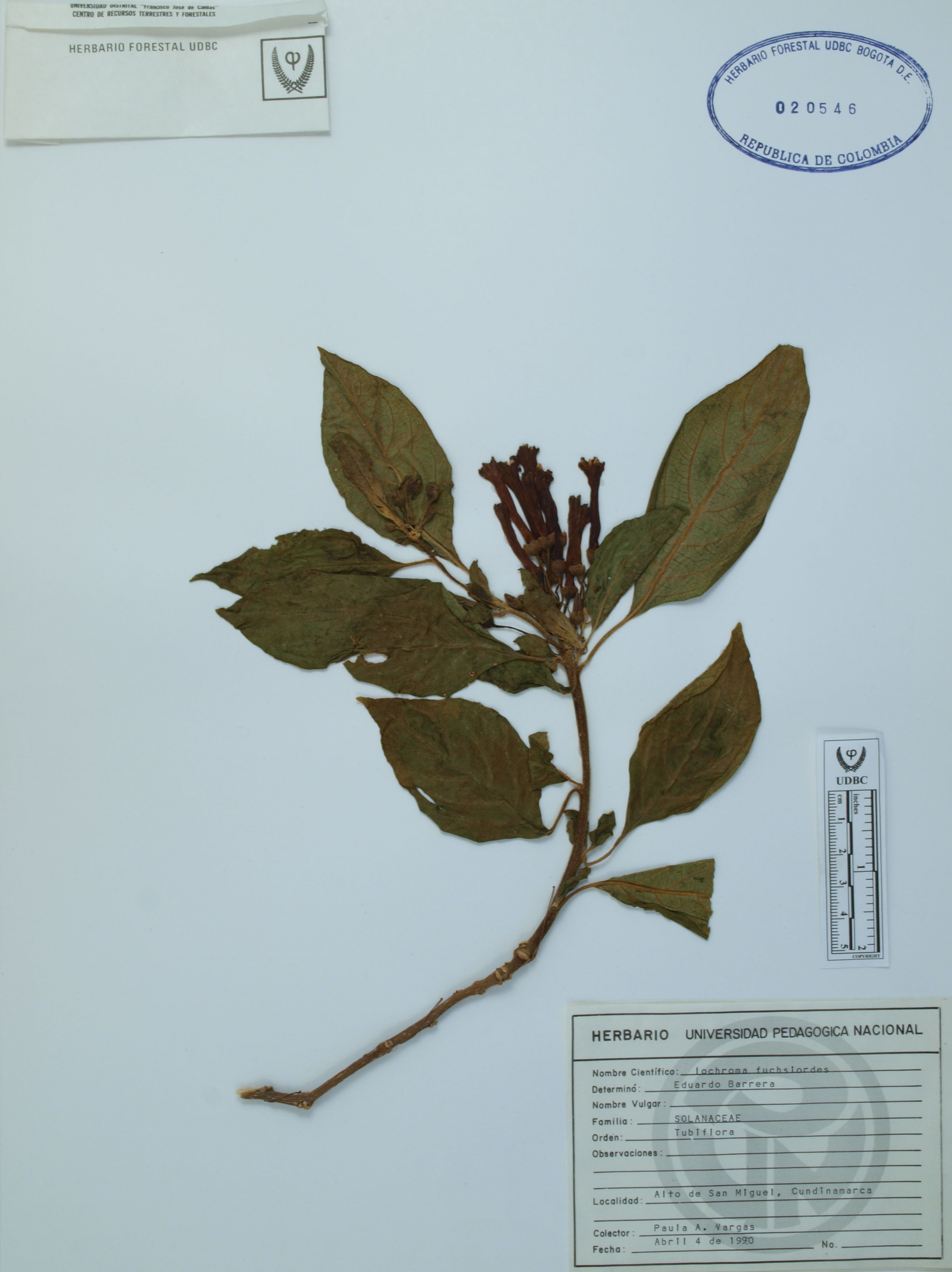 Fotografía del ejemplar Vargas, P., determinado como Iochroma fuchsioides
