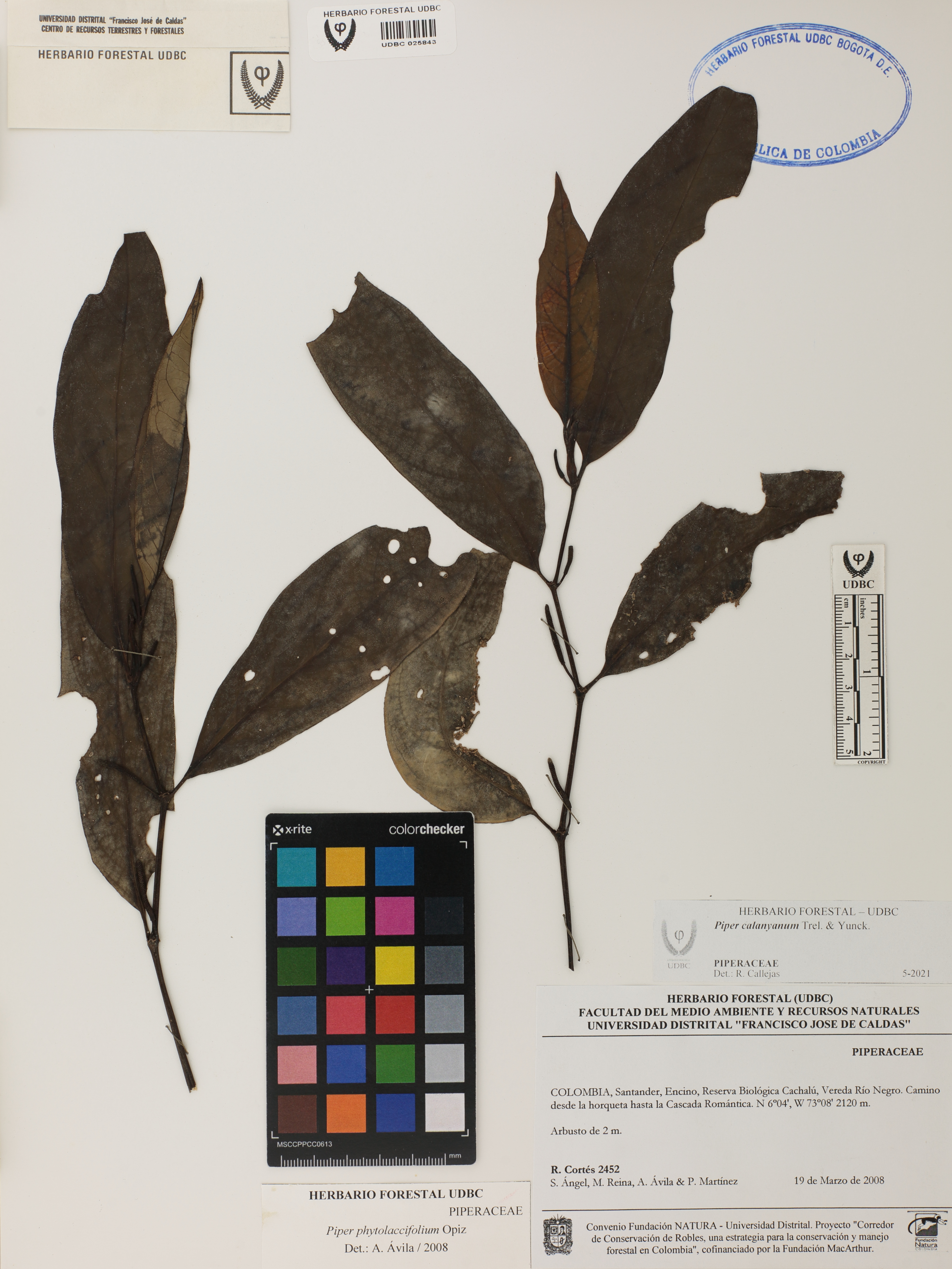 | dc.description | Fotografía del ejemplar Cortés, R. 2452, determinado como Piper calanyanum en el año 2021 | |