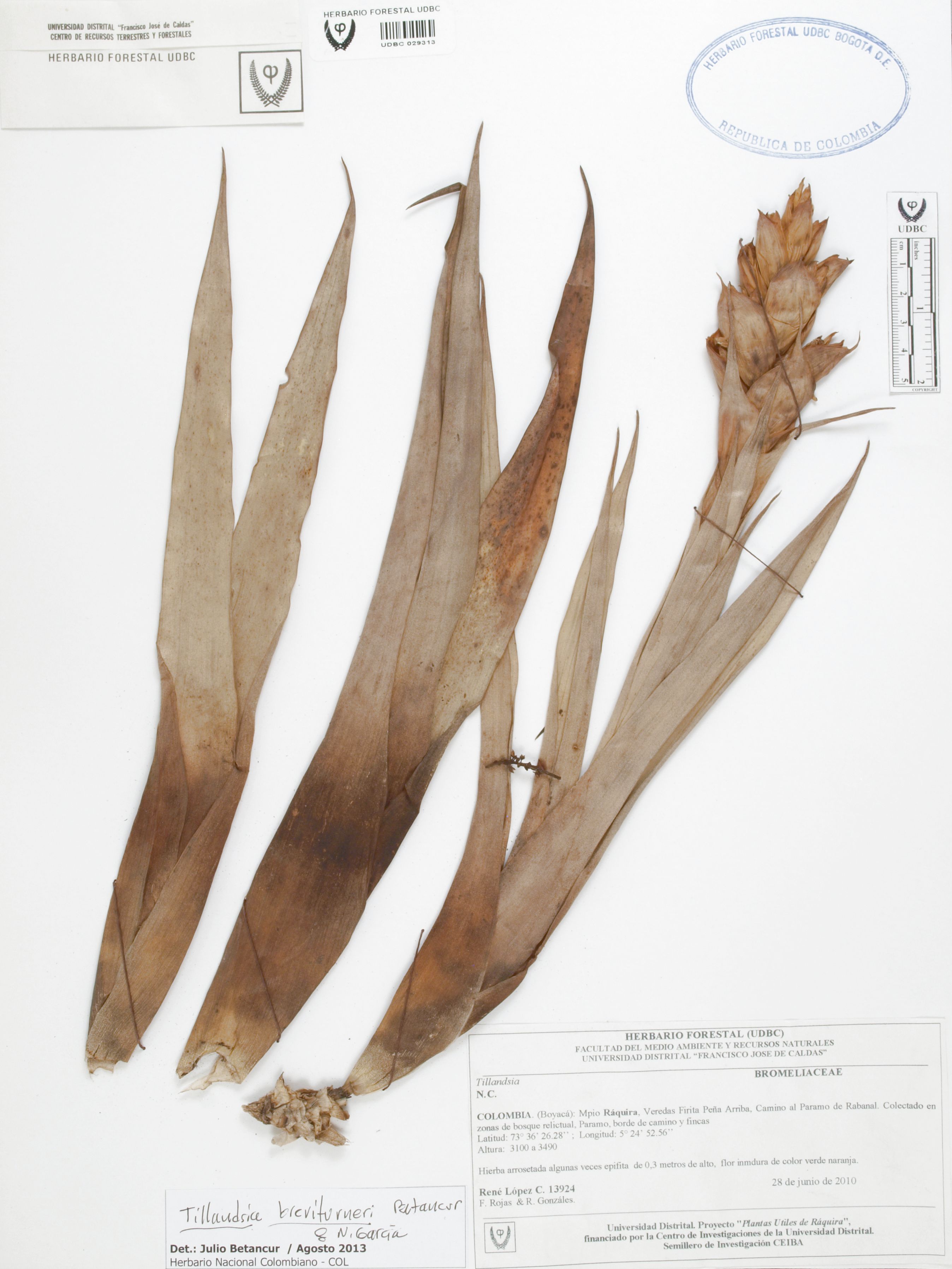 Fotografía del ejemplar López, R. 13924, determinado como Tillandsia breviturneri en el año 2013