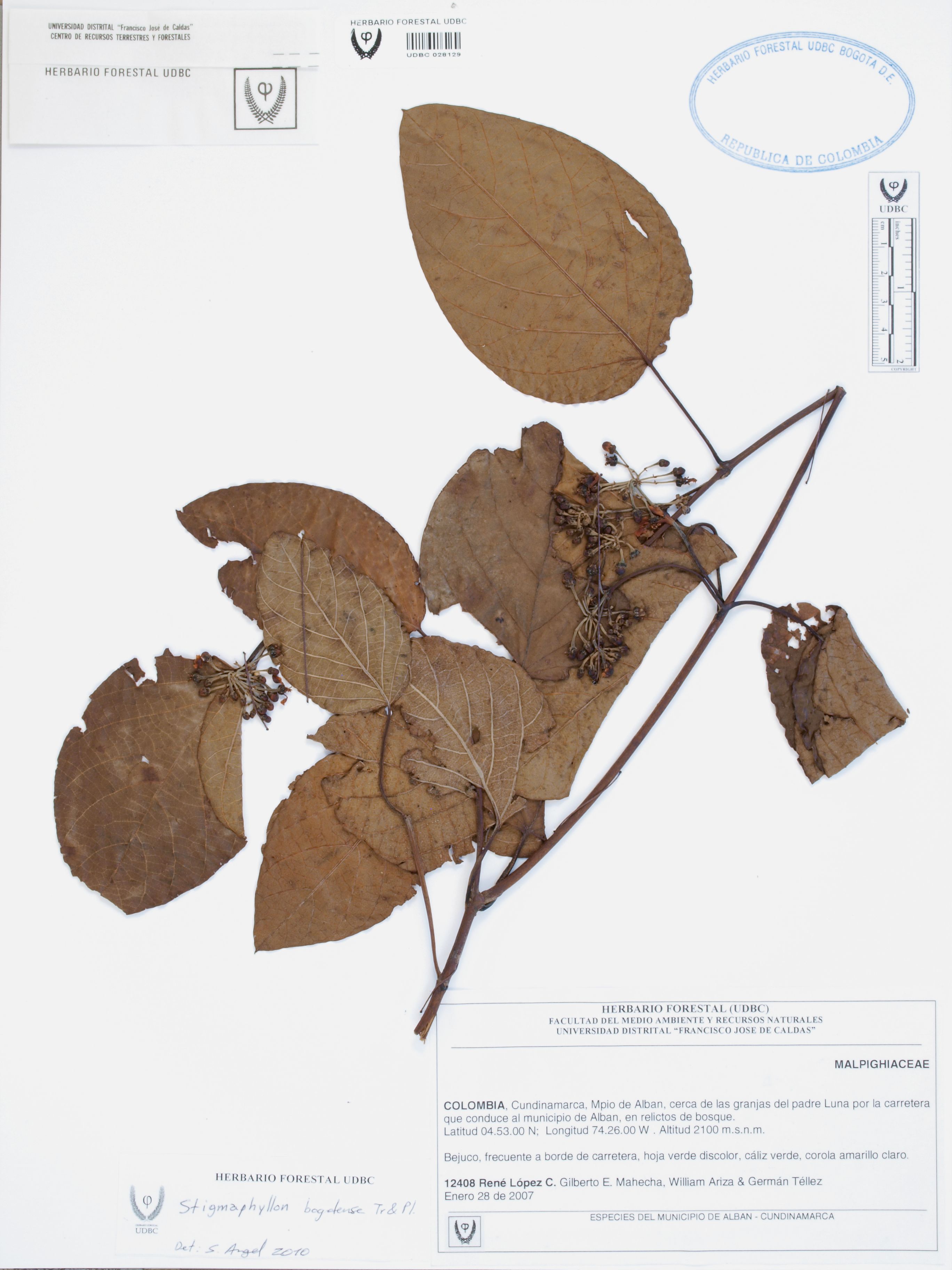 | dc.description | Fotografía del ejemplar López, R. 12408, determinado como Stigmaphyllon bogotense en el año 2010 | |