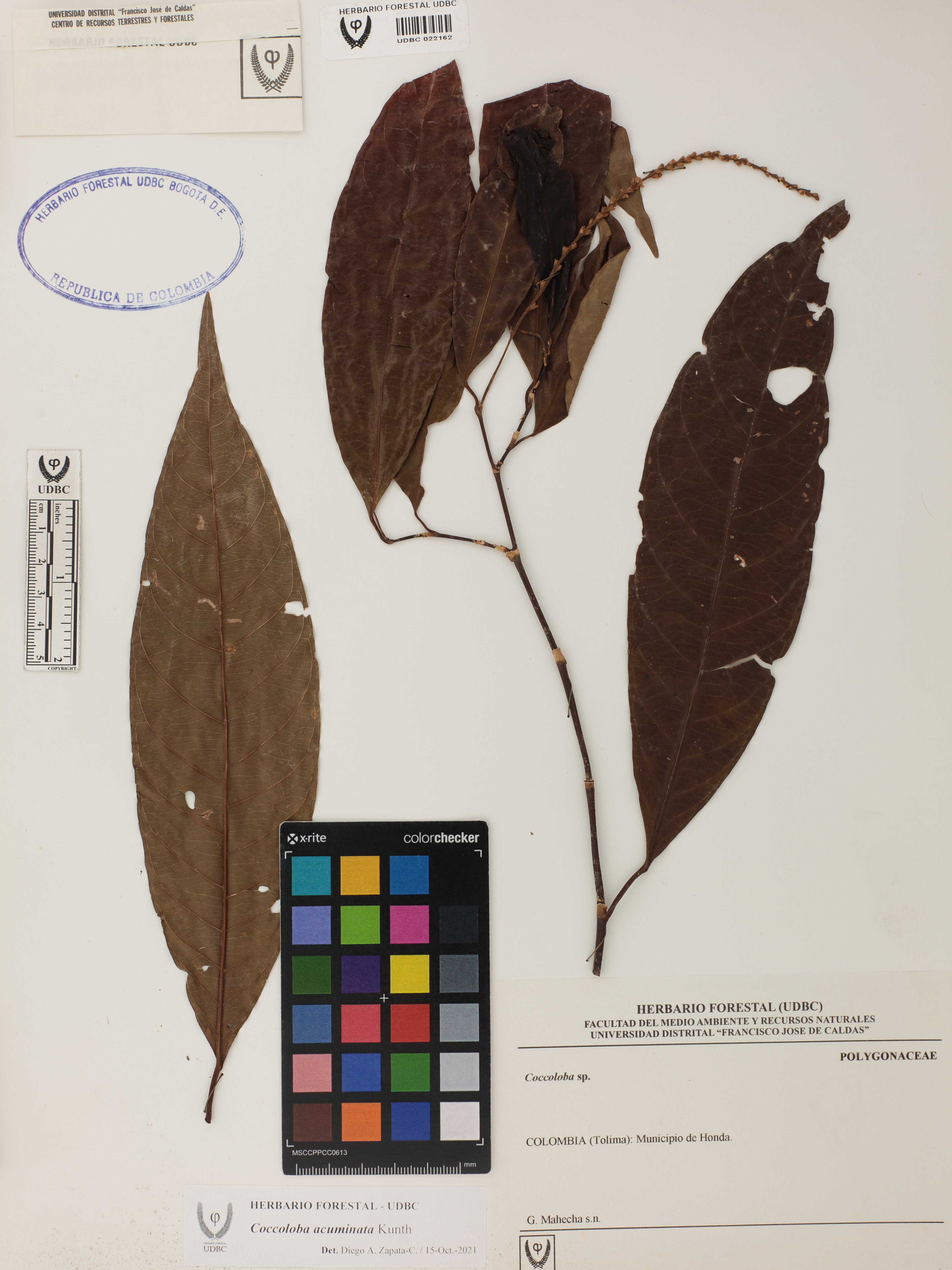 Fotografía del ejemplar Mahecha, G., determinado como Coccoloba acuminata en el año 2021