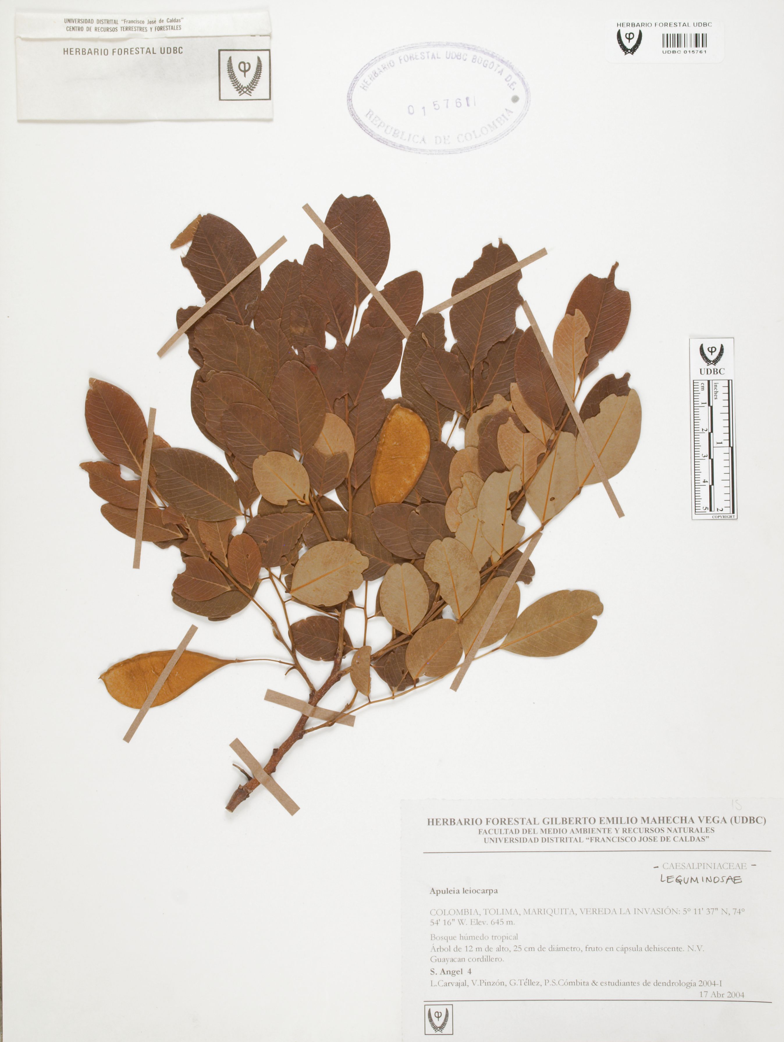 Fotografía del ejemplar Ángel, S. 4, determinado como Apuleia leiocarpa