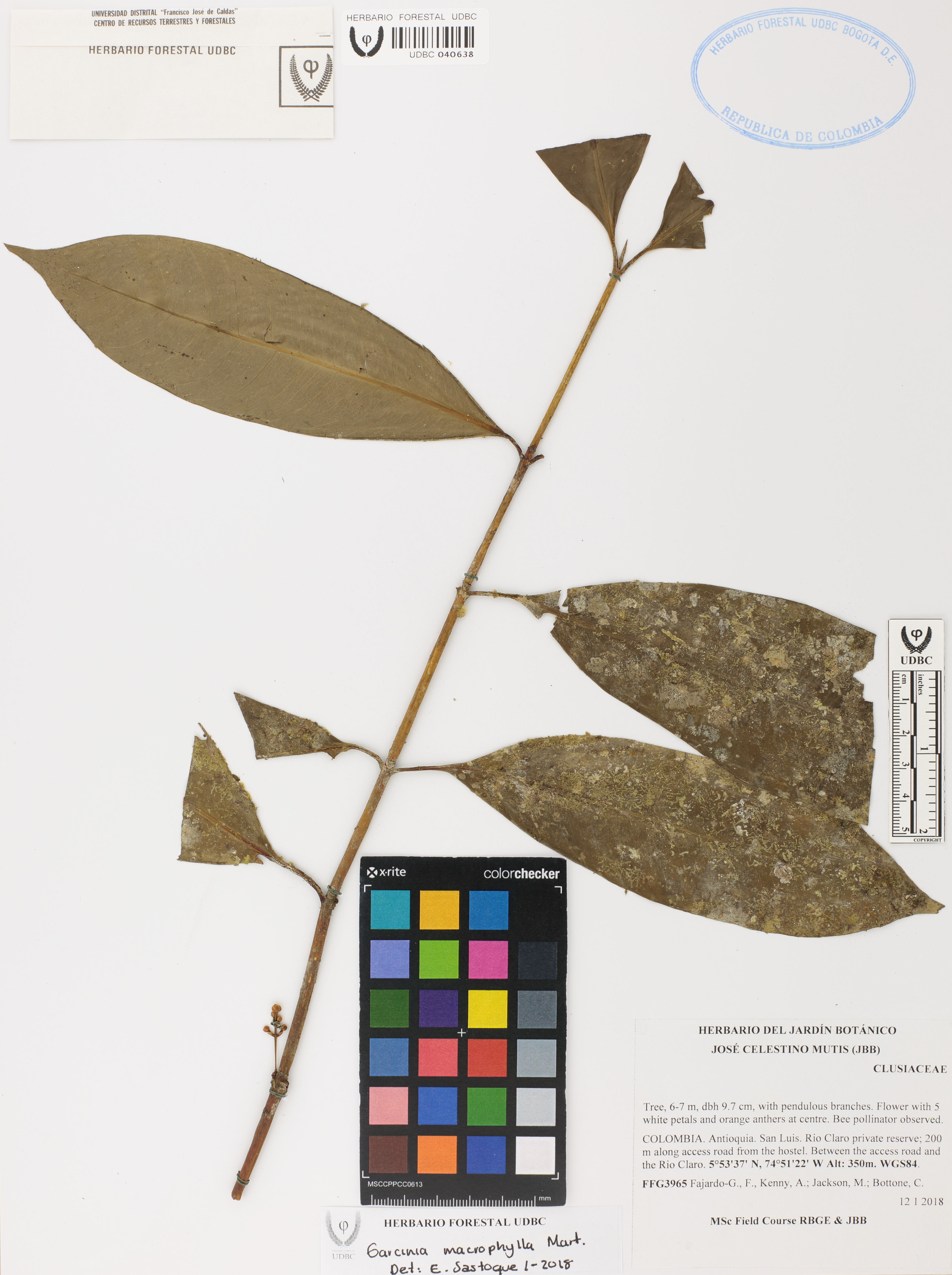 Fotografía del ejemplar Fajardo-G., F. 3965, determinado como Clusiaceae