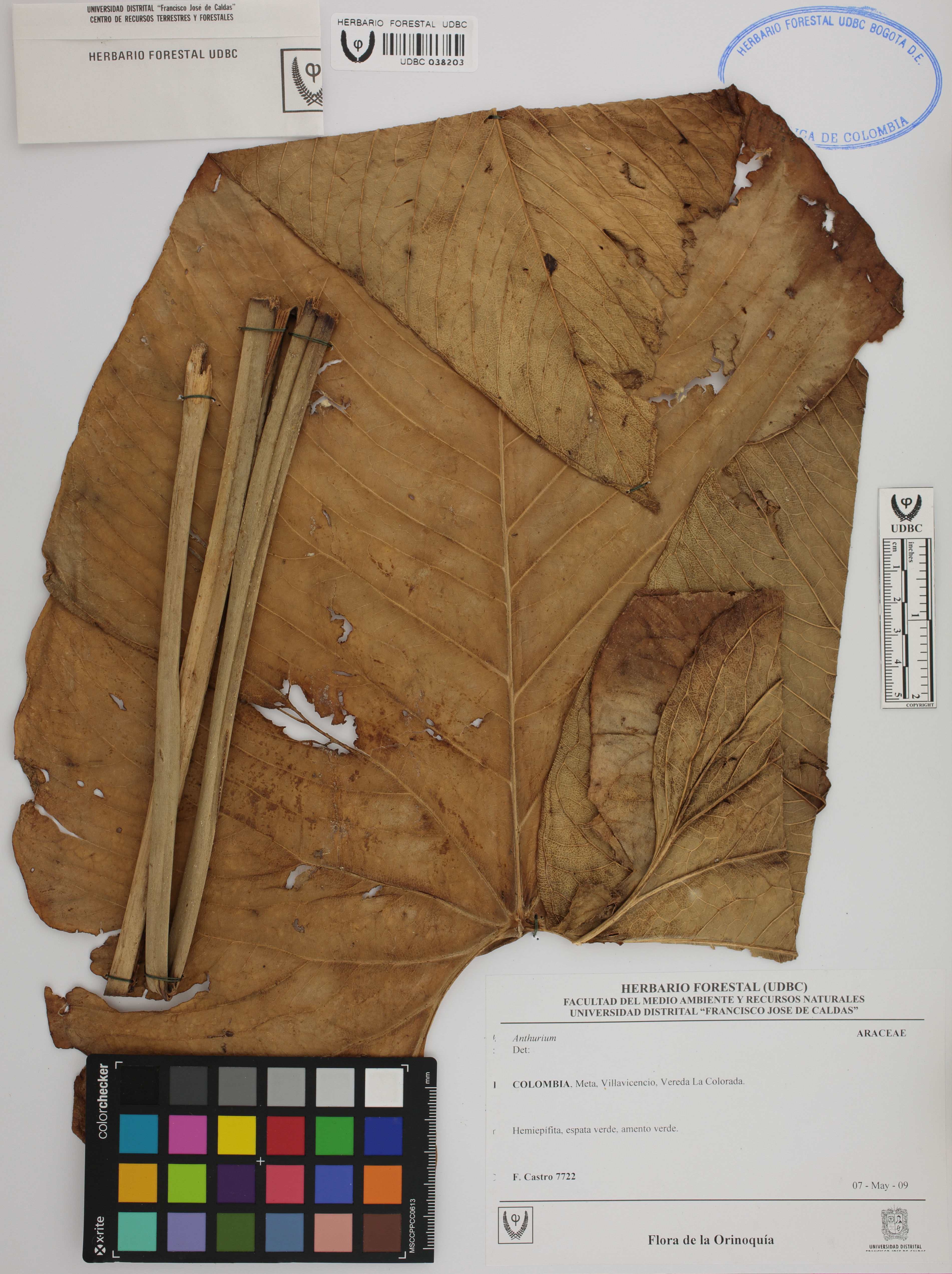 Fotografía del ejemplar Castro, F. 7722, determinado como Anthurium sp.