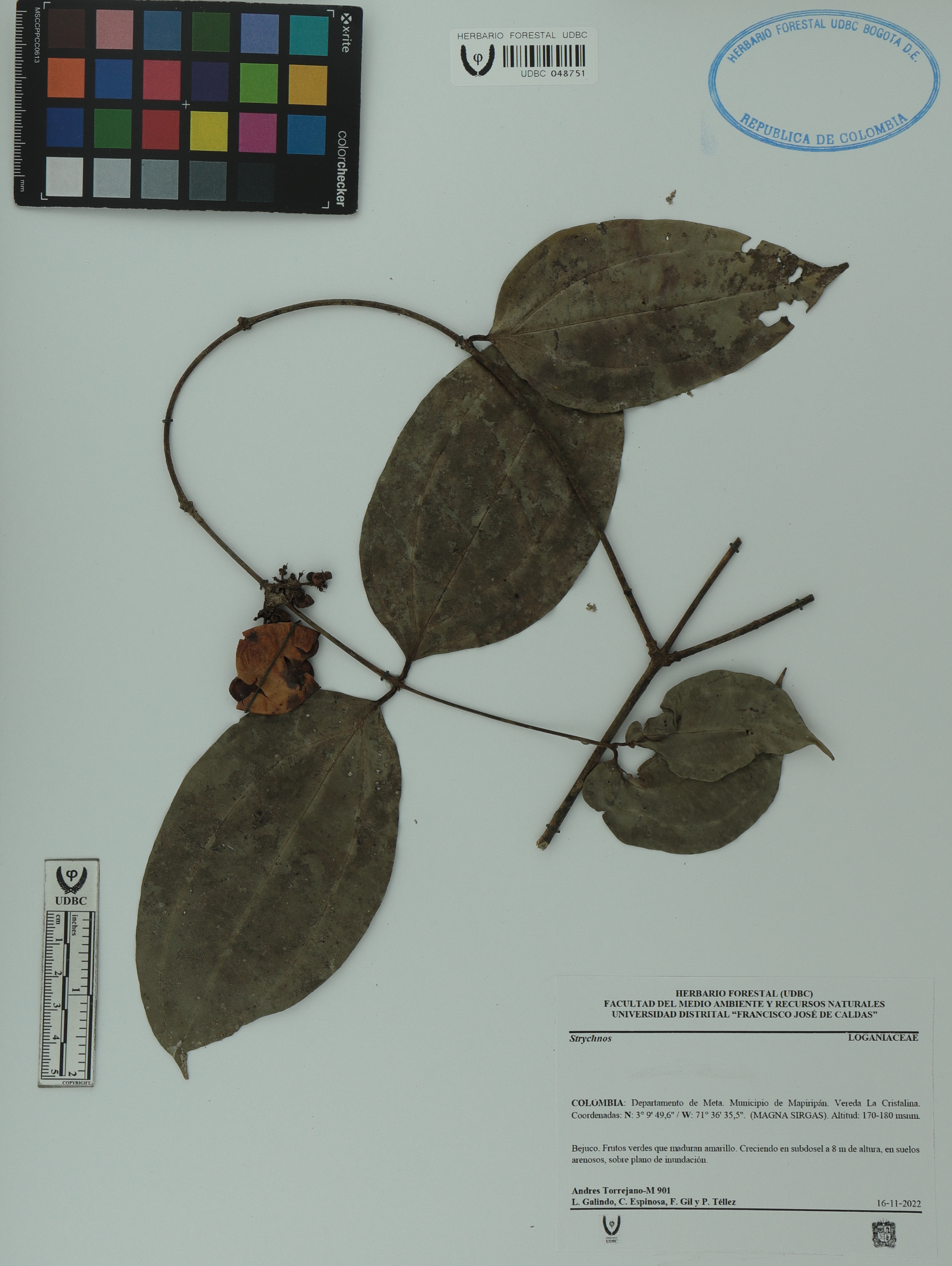 Fotografía del ejemplar Torrejano-M., Andrés 901, determinado como Strychnos bredemeyeri en el año 2024