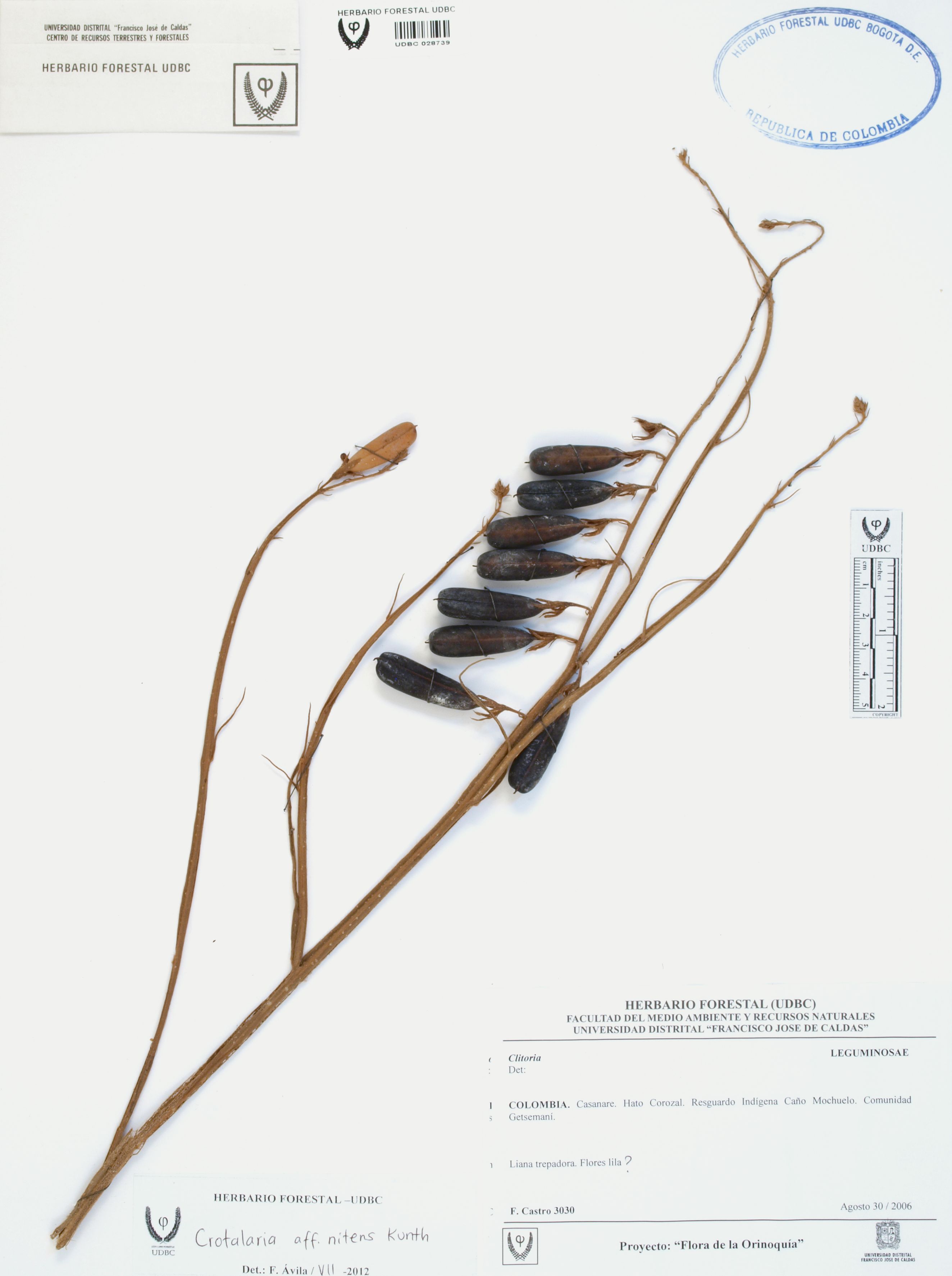 Fotografía del ejemplar Castro, F. 3030, determinado como Crotalaria nitens en el año 2012