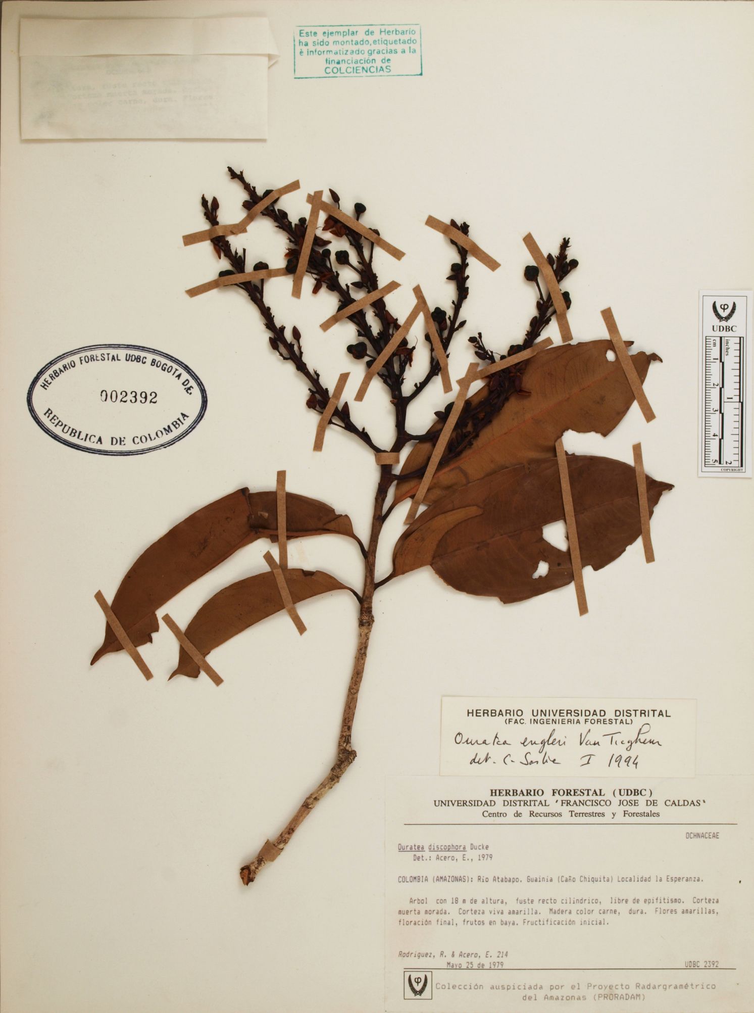 Fotografía del ejemplar Rodríguez, R. 214, determinado como Ouratea engleri en el año 1994