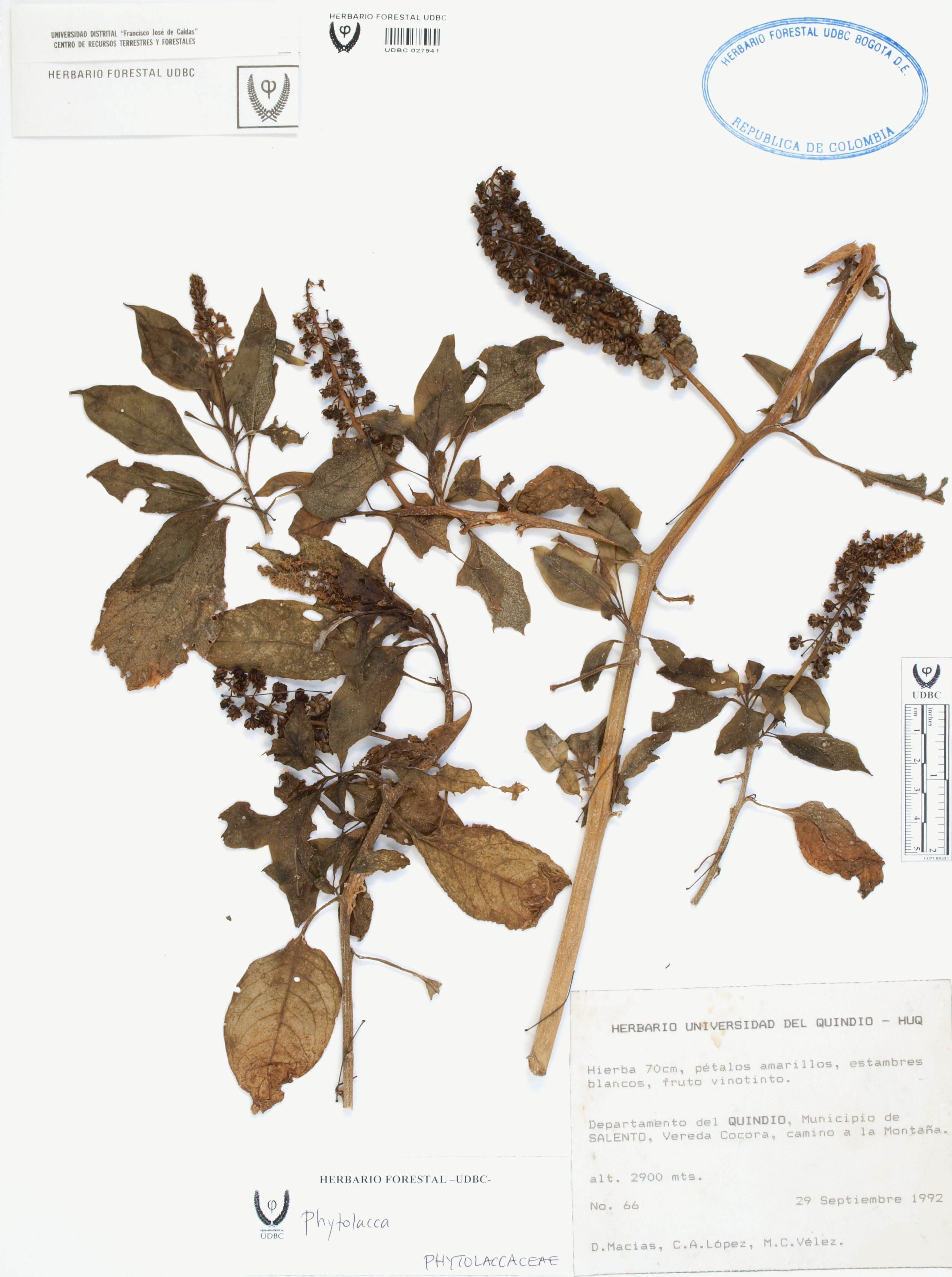 Fotografía del ejemplar Macías, D. 66, determinado como Phytolacca sp.