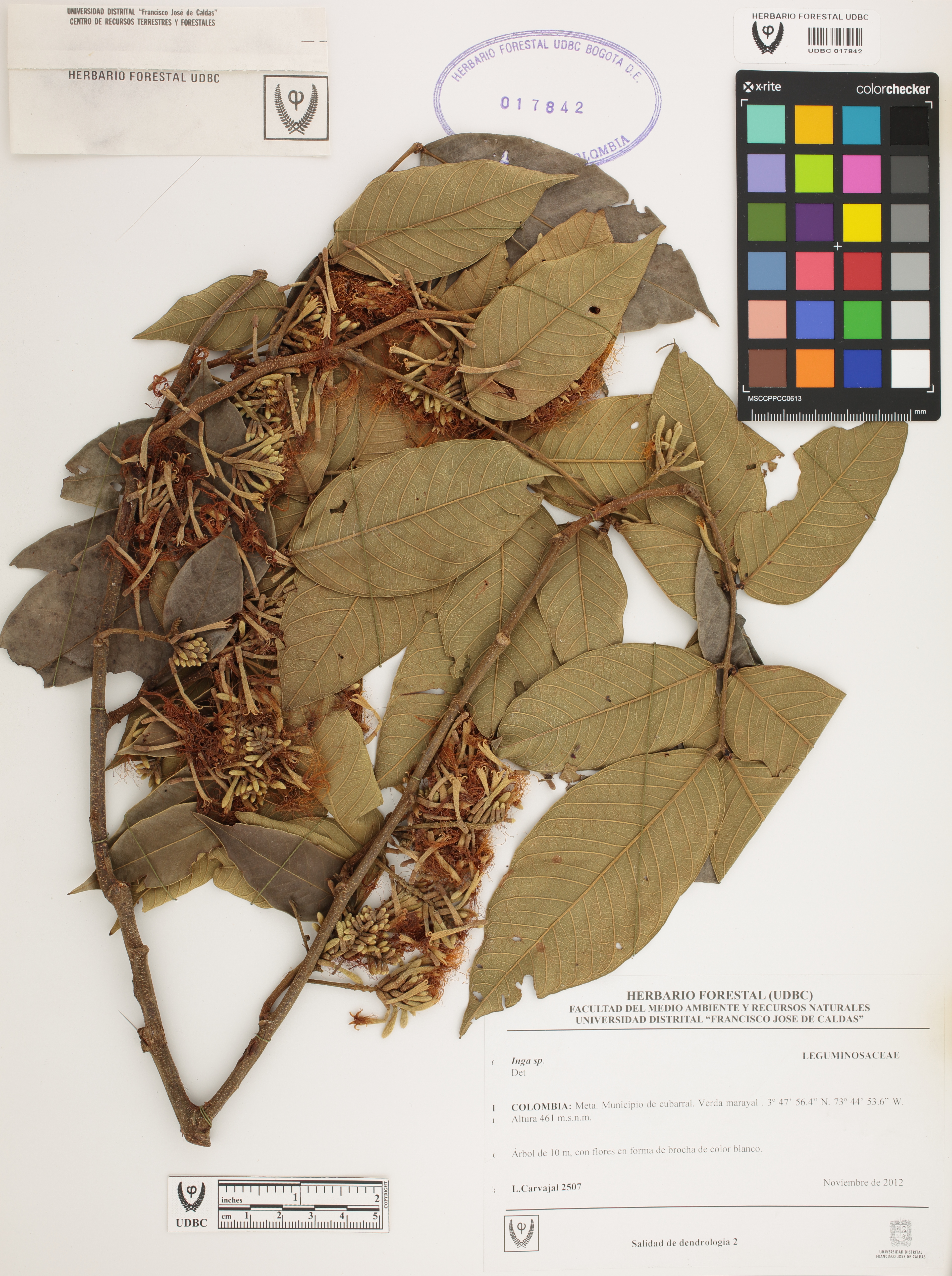 Fotografía del ejemplar Carvajal, L. 2507, determinado como Inga sp.