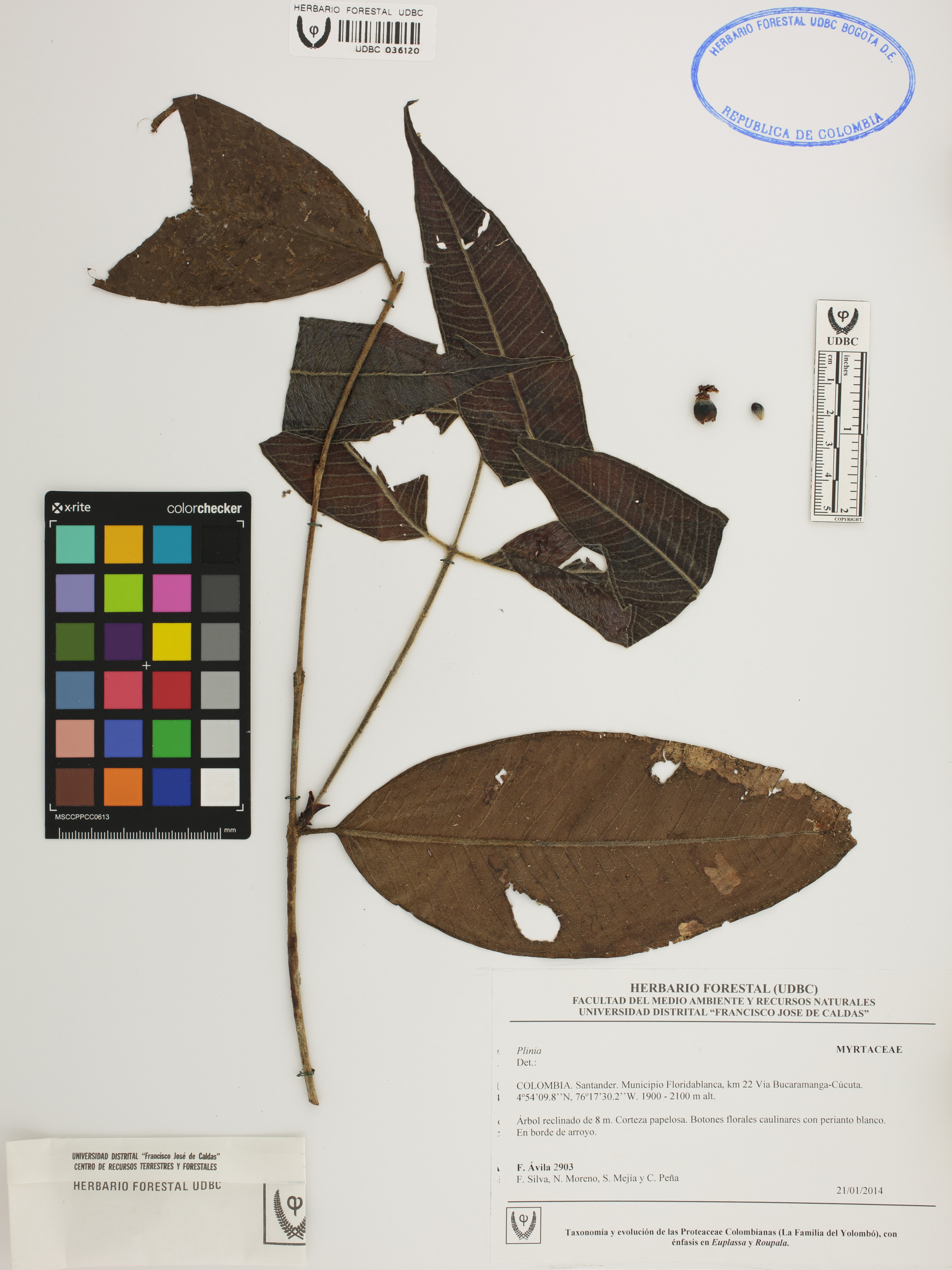 Fotografía del ejemplar Ávila, F. 2903, determinado como Plinia sp.