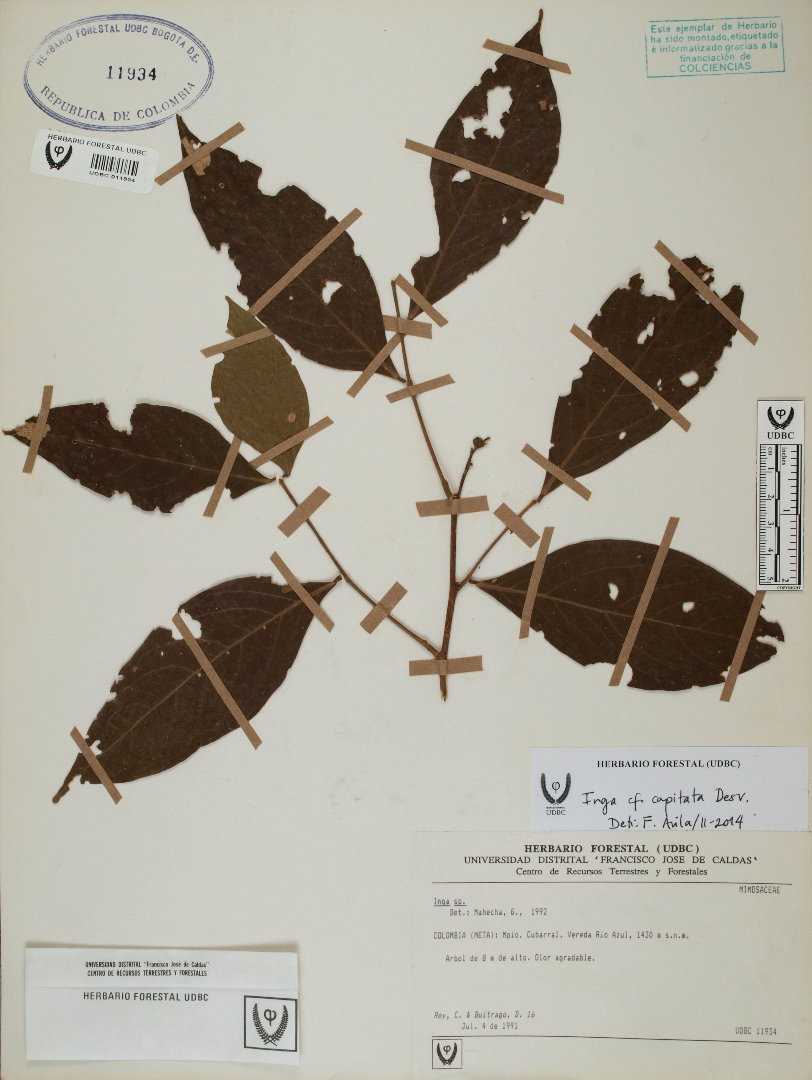 Fotografía del ejemplar Rey, C. 16, determinado como Inga capitata en el año 2014