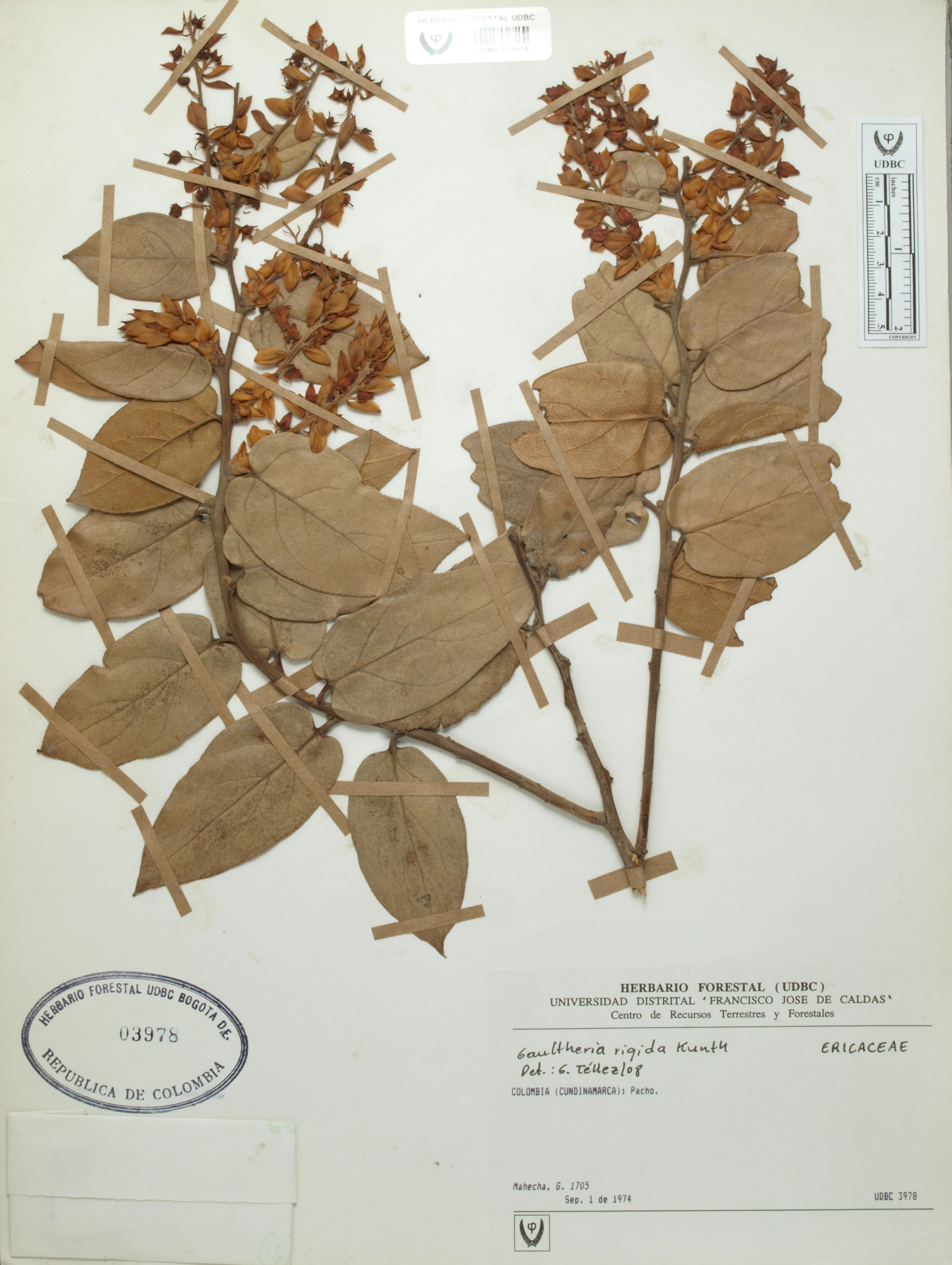 Fotografía del ejemplar Mahecha, G. 1705, determinado como Gaultheria rigida en el año 2008