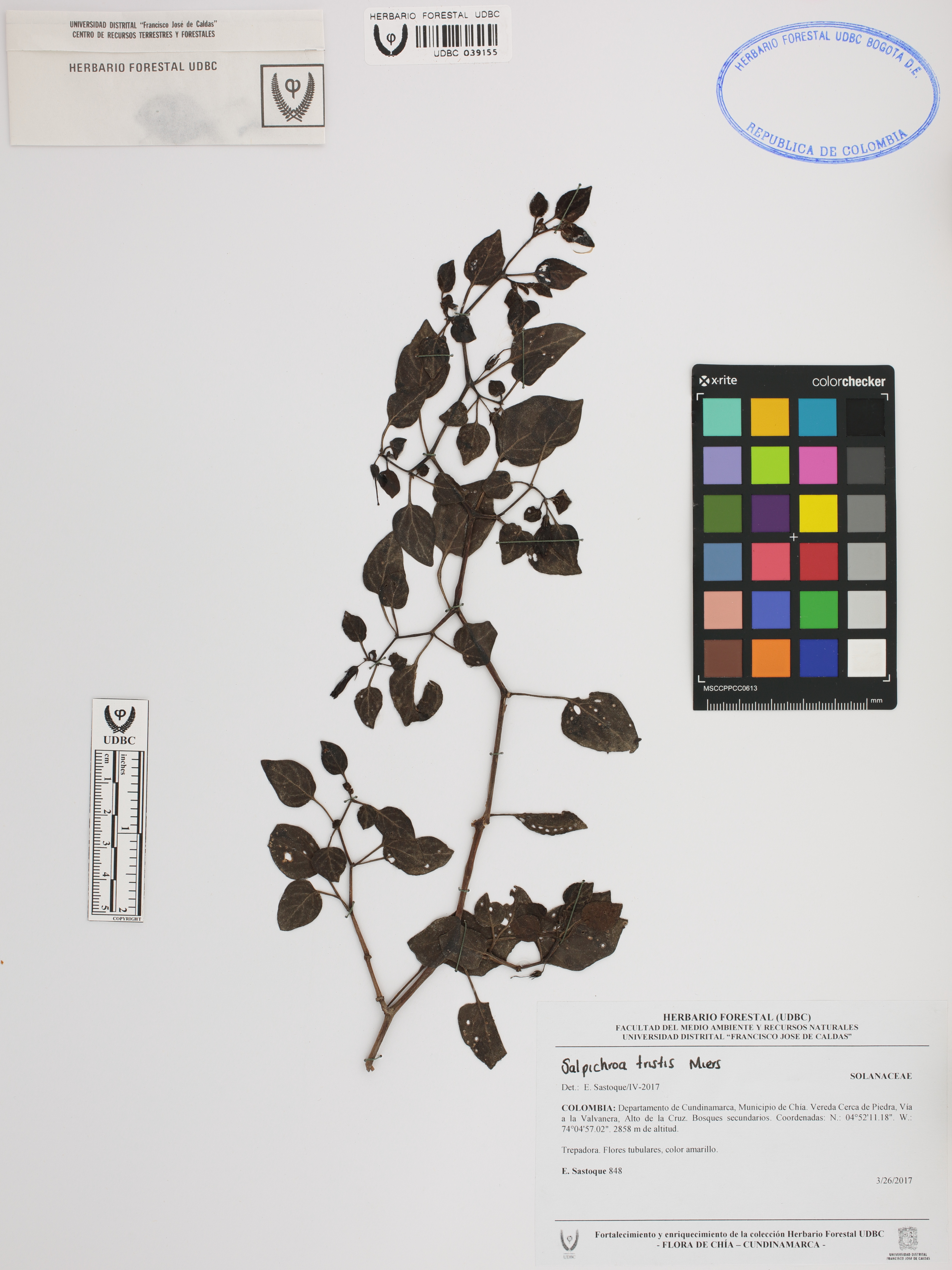 | dc.description | Fotografía del ejemplar Sastoque, E. 848, determinado como Salpichroa tristis en el año 2017 | |