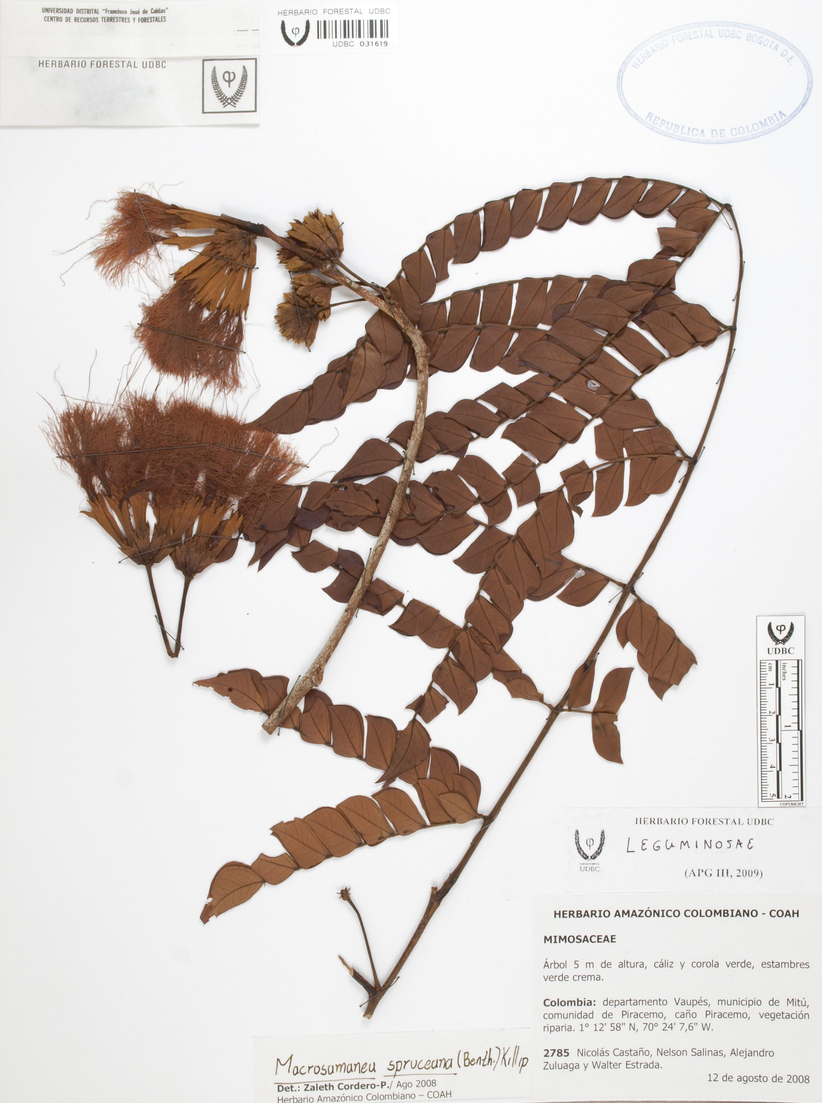 | dc.description | Fotografía del ejemplar Castaño, N. 2785, determinado como Macrosamanea spruceana en el año 2008 | |