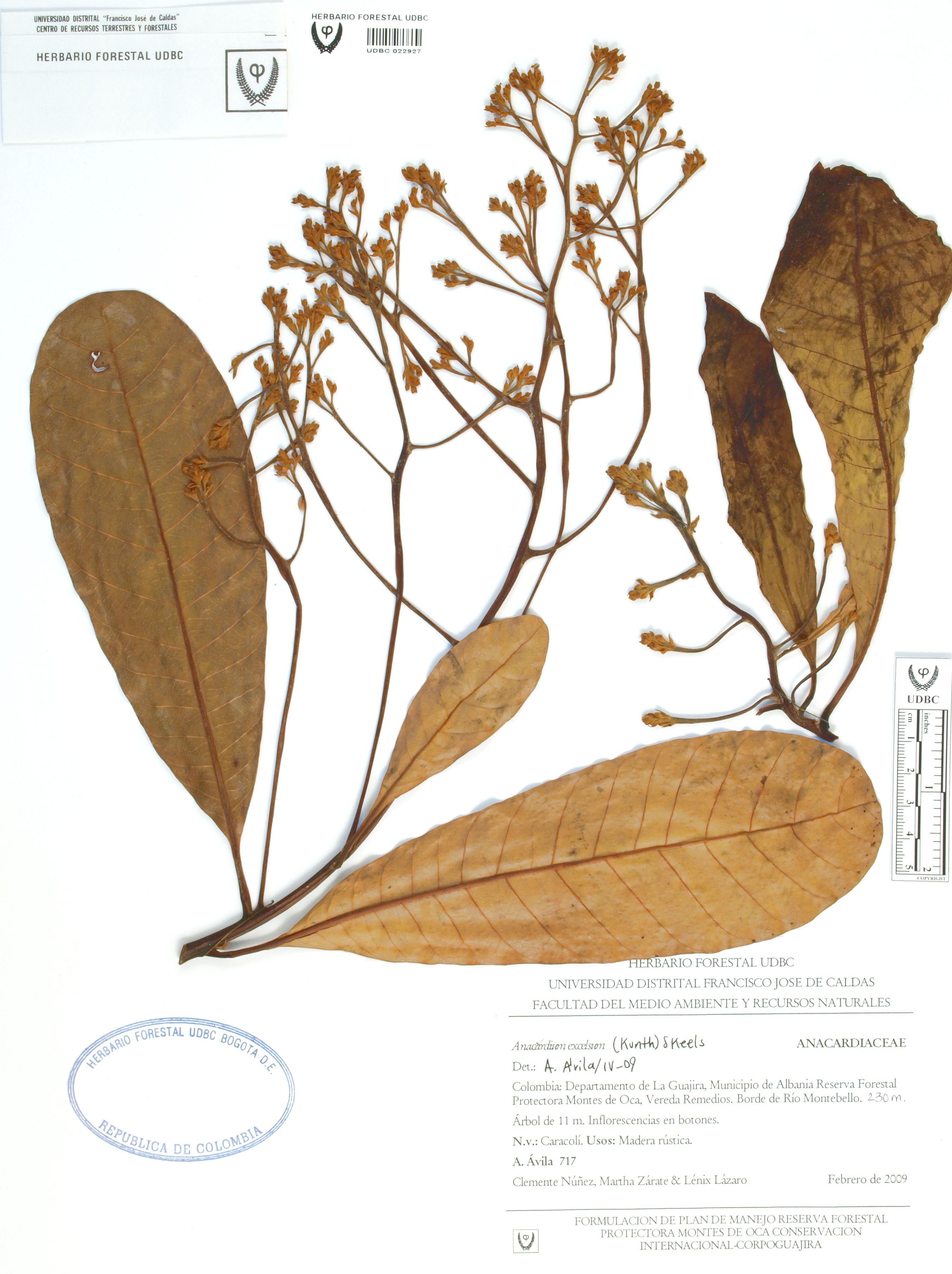 Fotografía del ejemplar Ávila, F. 717, determinado como Anacardium excelsum en el año 2009