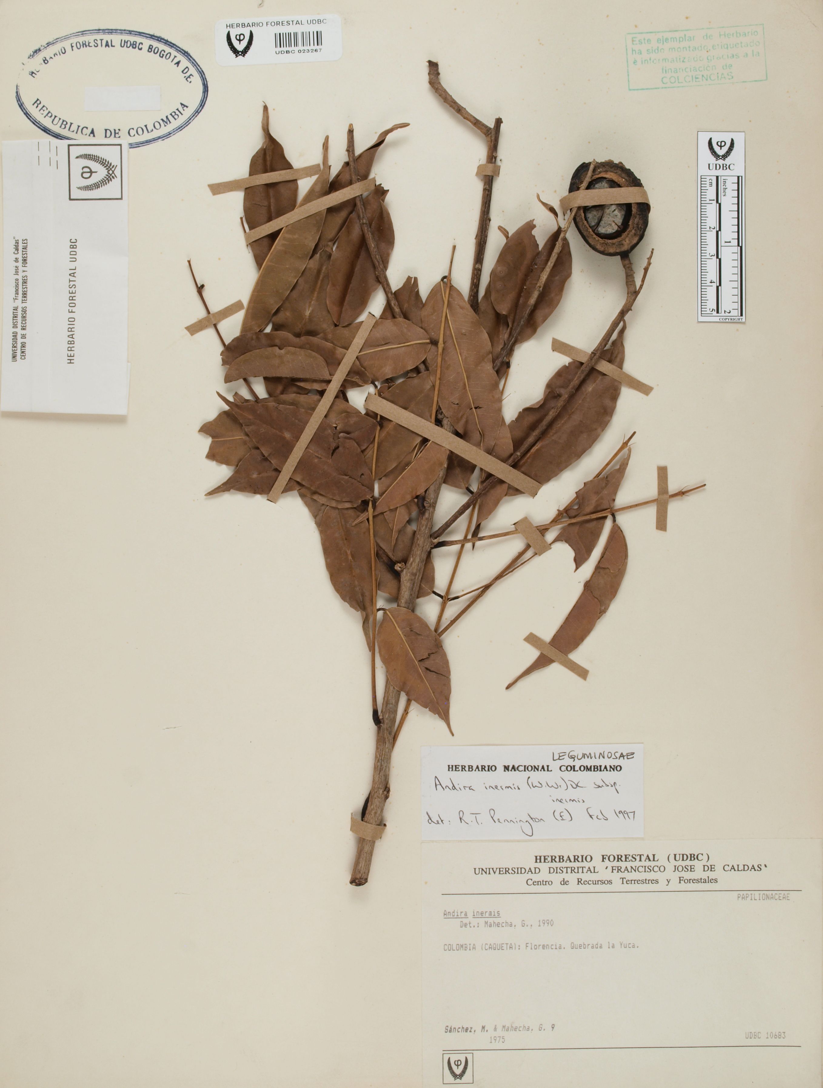 Fotografía del ejemplar Sánchez, M. 9, determinado como Andira inermis subsp. inermis en el año 1997