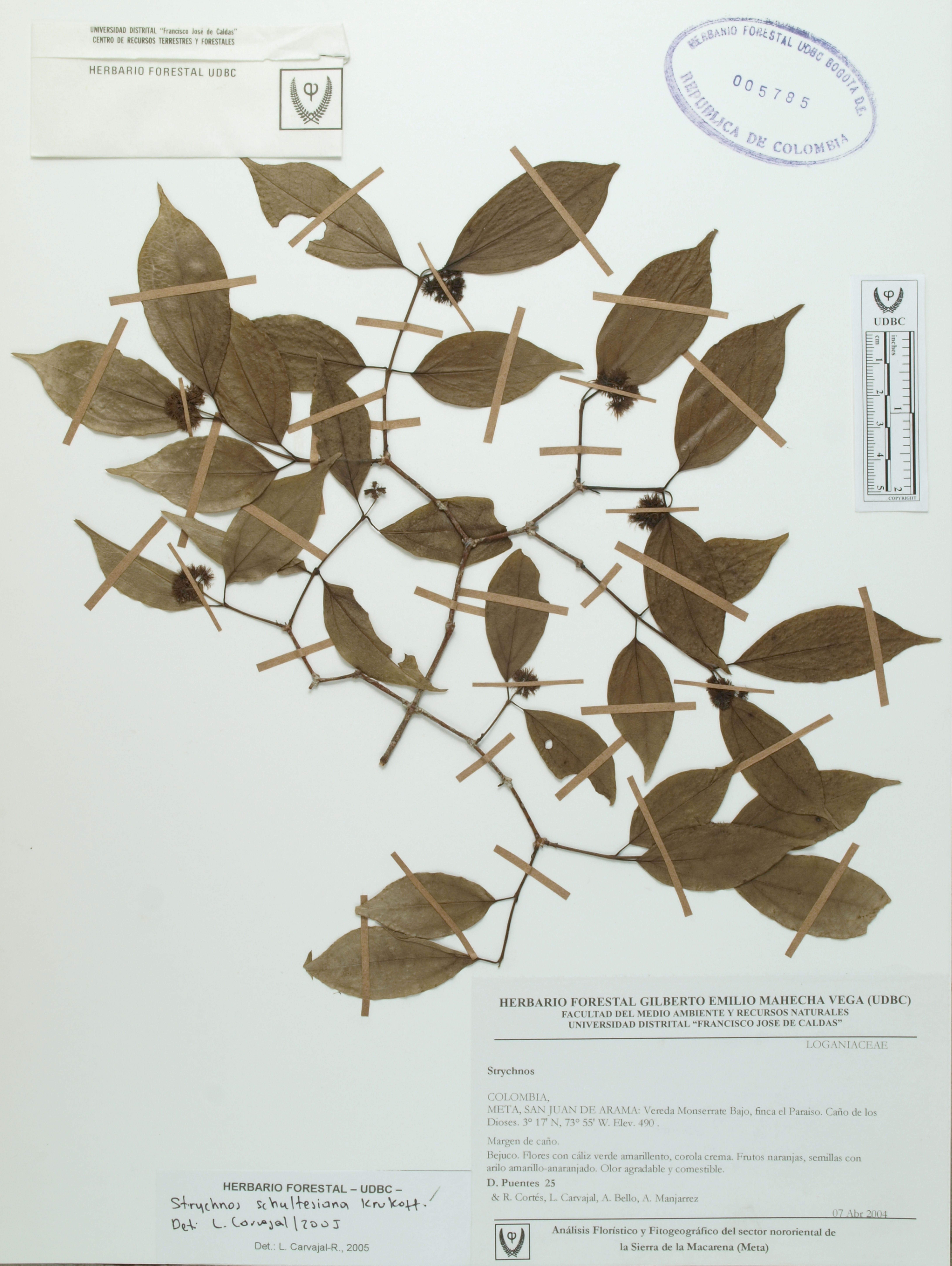 Fotografía del ejemplar Puentes, D. 25, determinado como Strychnos schultesiana en el año 2005