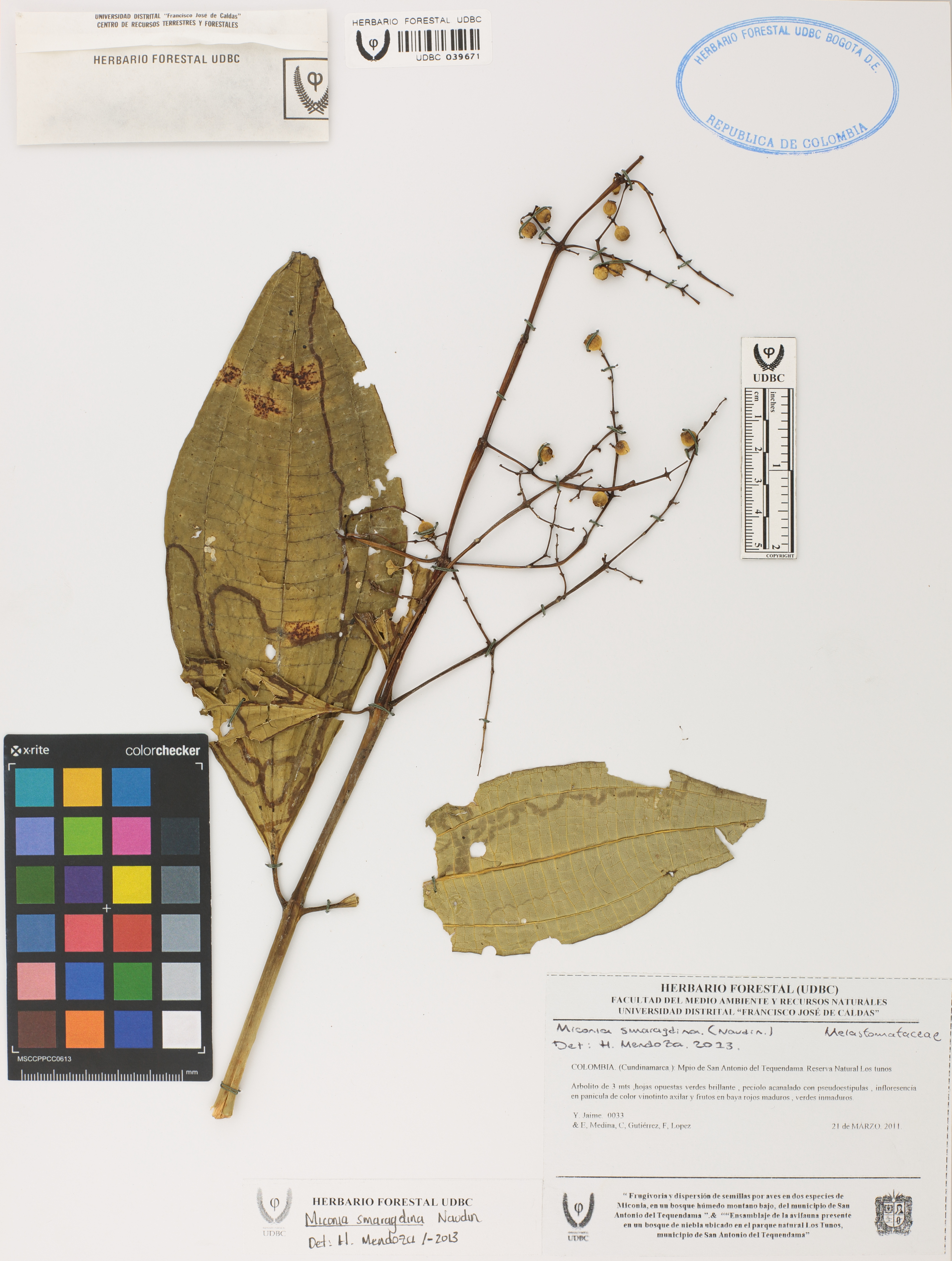 Fotografía del ejemplar Jaime, Y. 33, determinado como Miconia smaragdina en el año 2013