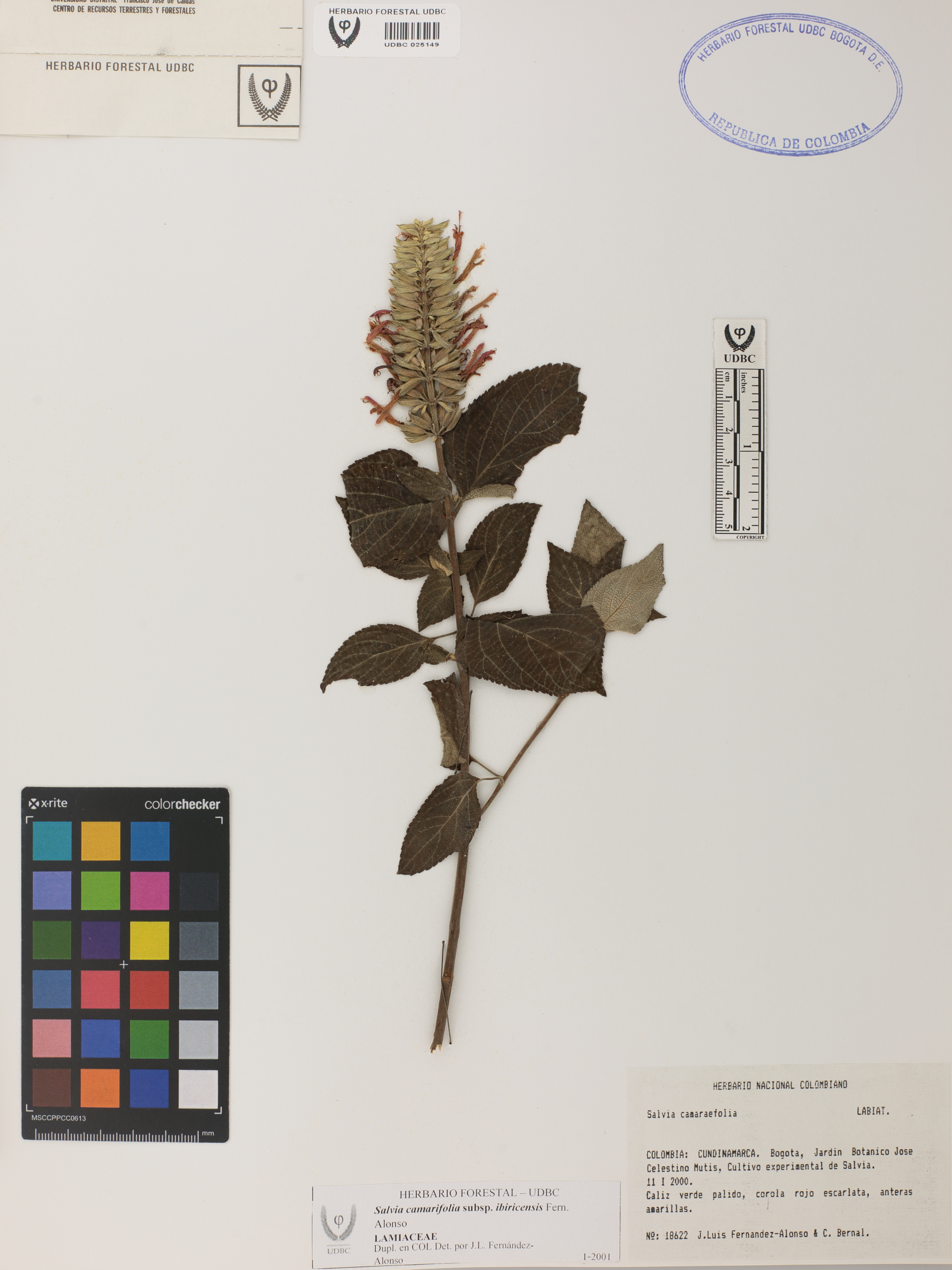 Fotografía del ejemplar Fernández-Alonso, J. 18622, determinado como Salvia camarifolia subsp. ibiricensis en el año 2001
