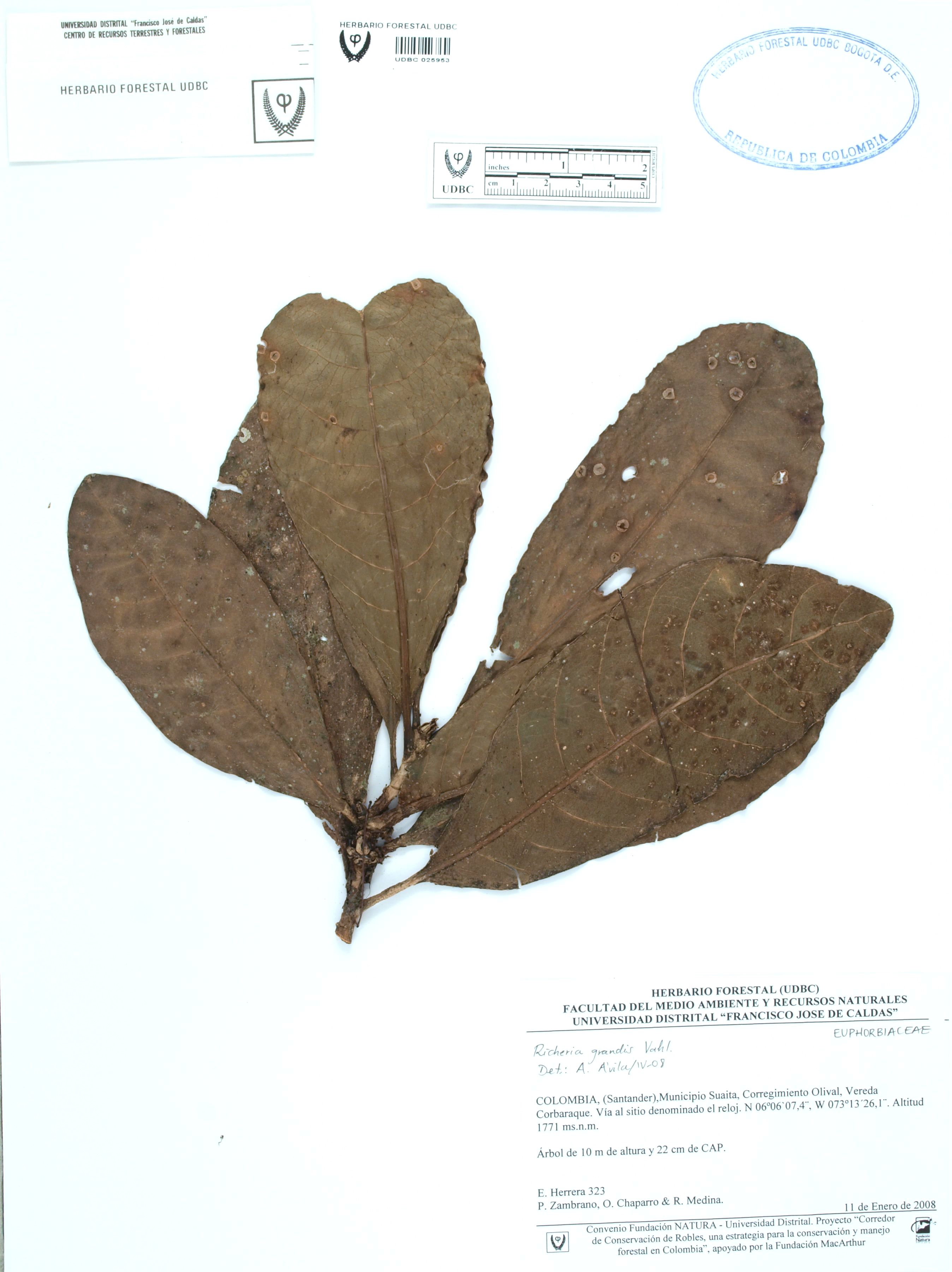 Fotografía del ejemplar Herrera, E. 322, determinado como Richeria grandis en el año 2008