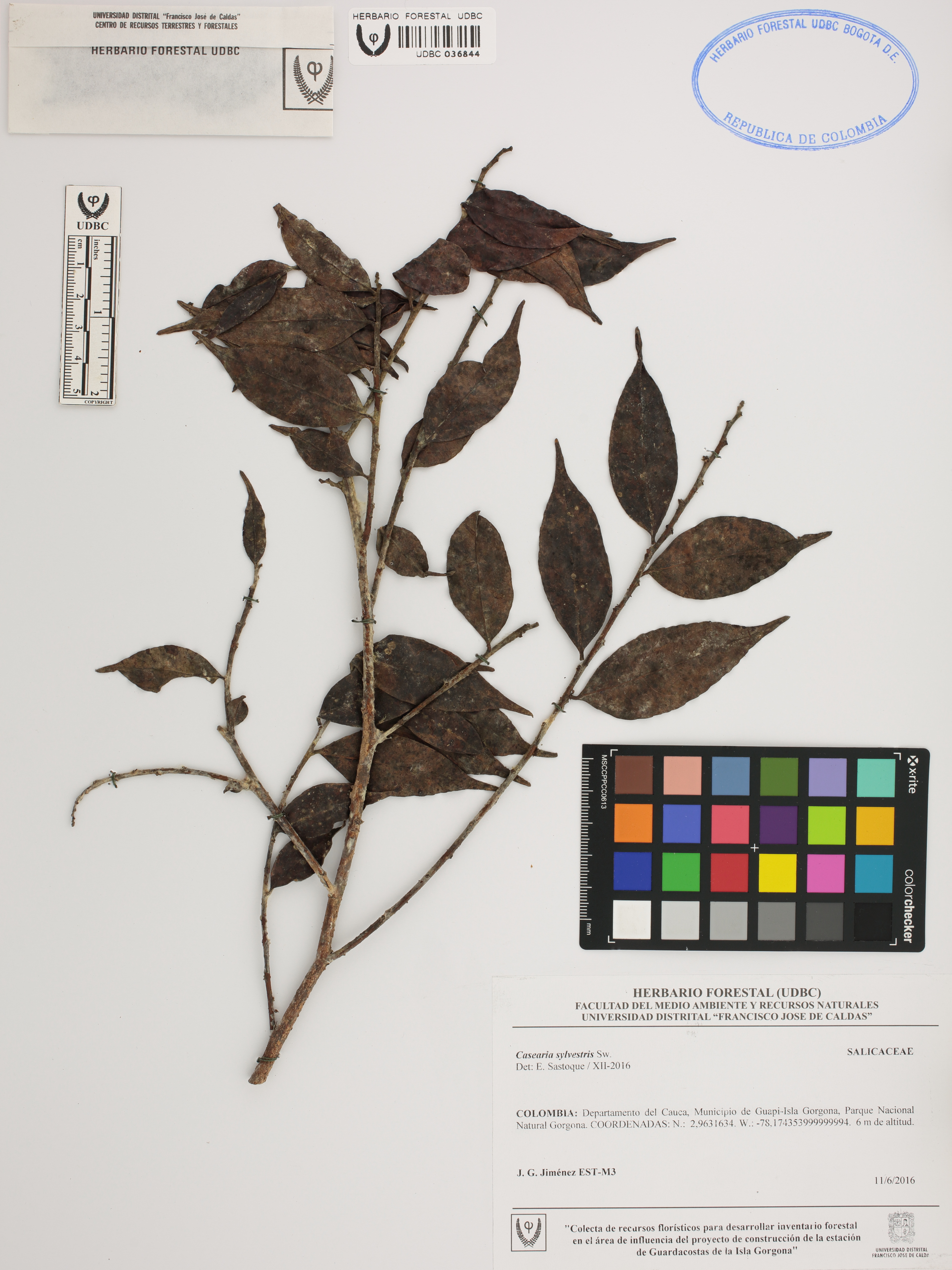 Fotografía del ejemplar Jiménez, J. Est - M3, determinado como Casearia sylvestris en el año 2016