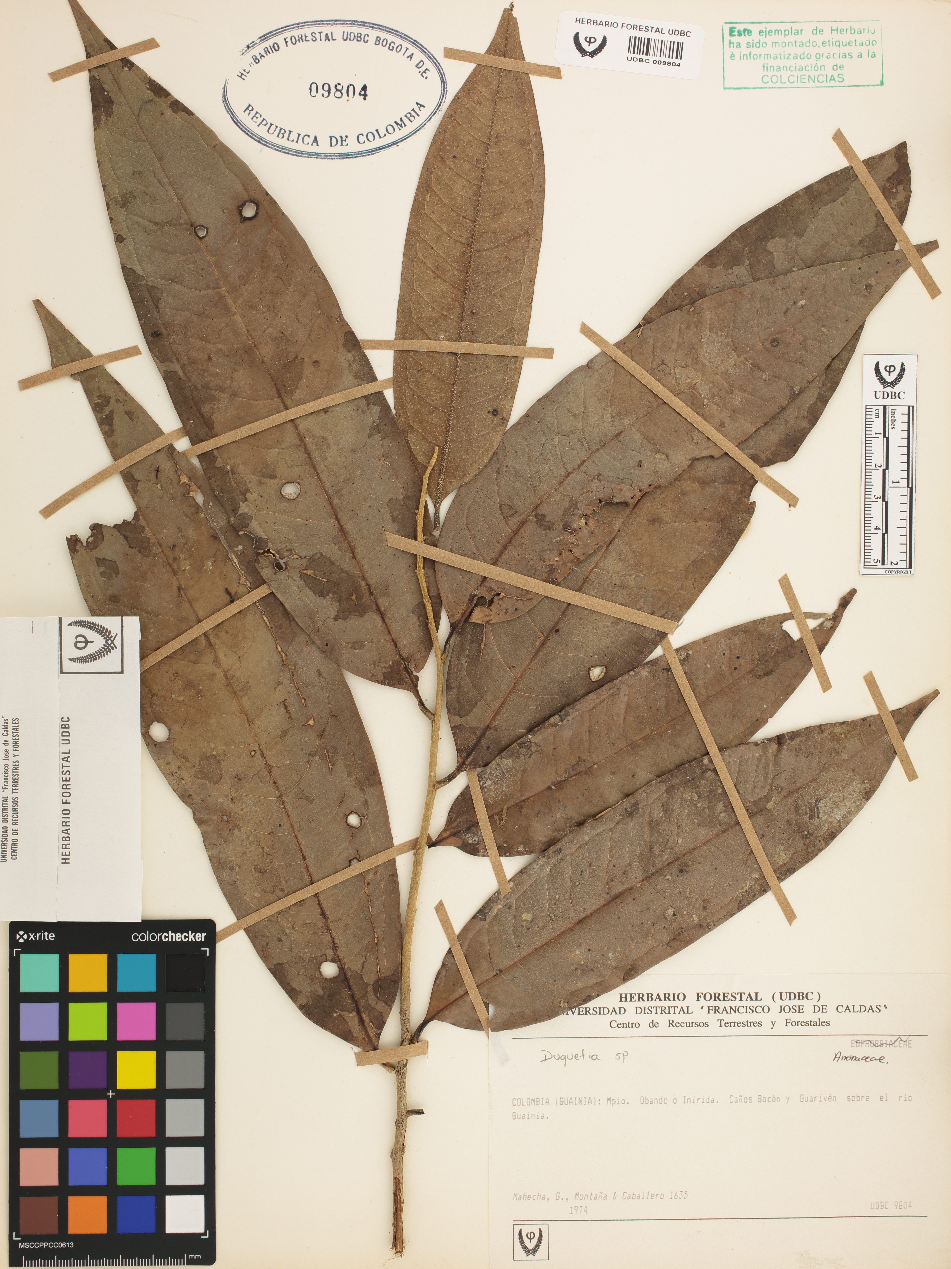 Fotografía del ejemplar Mahecha, G. 1635, determinado como Duguetia cauliflora en el año 2022